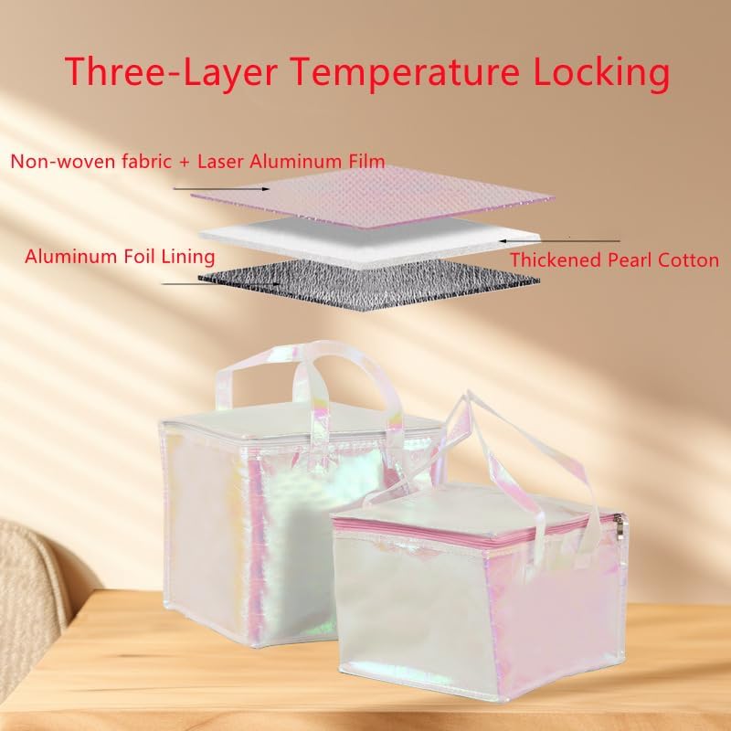 2Pack 10.2×10.2×12.6" Reusable Laser Film Insulated Zipper Aluminum Bag