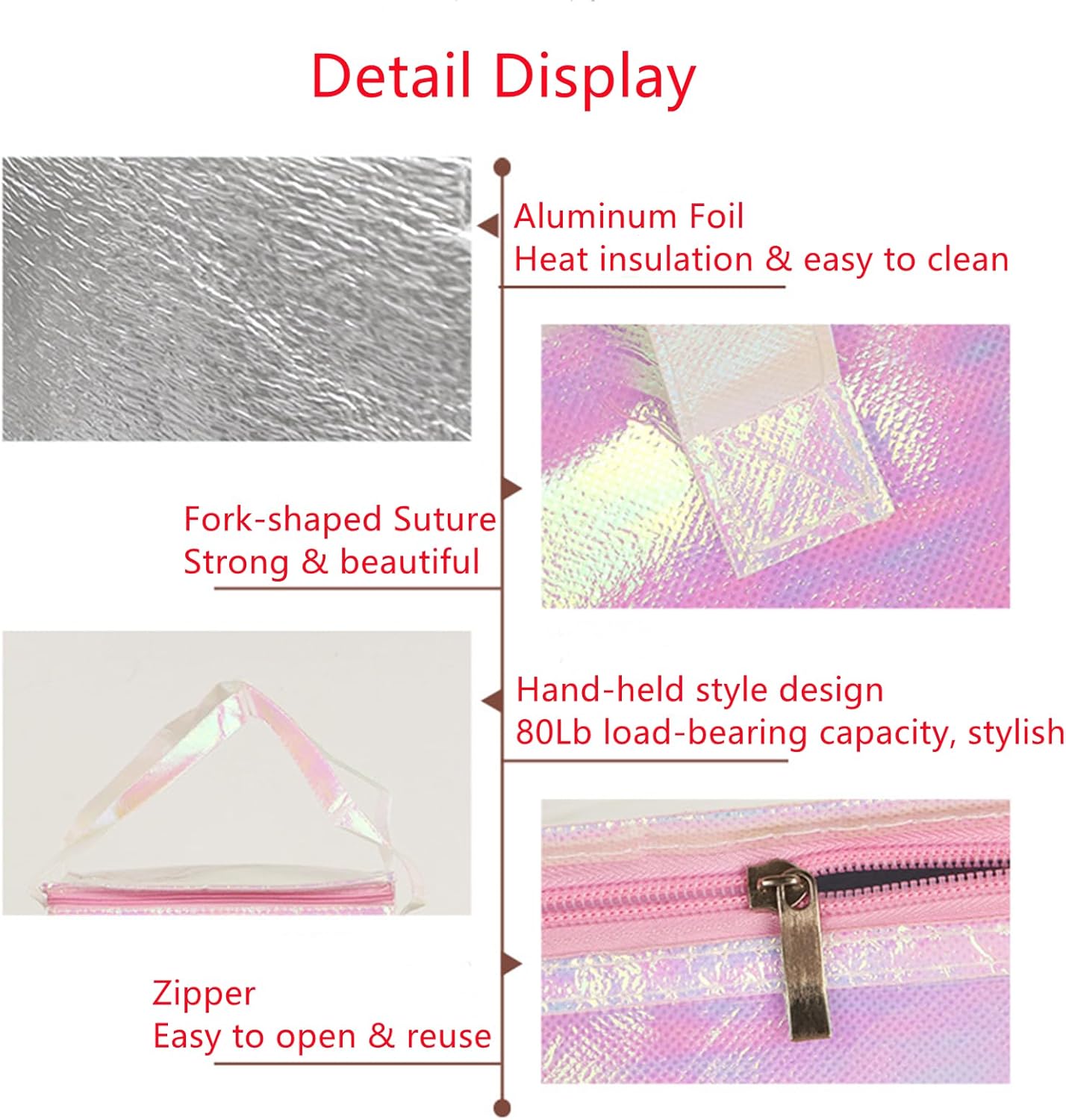 10.2×10.2×12.6" Reusable Laser Film Insulated Zipper Aluminum Bag