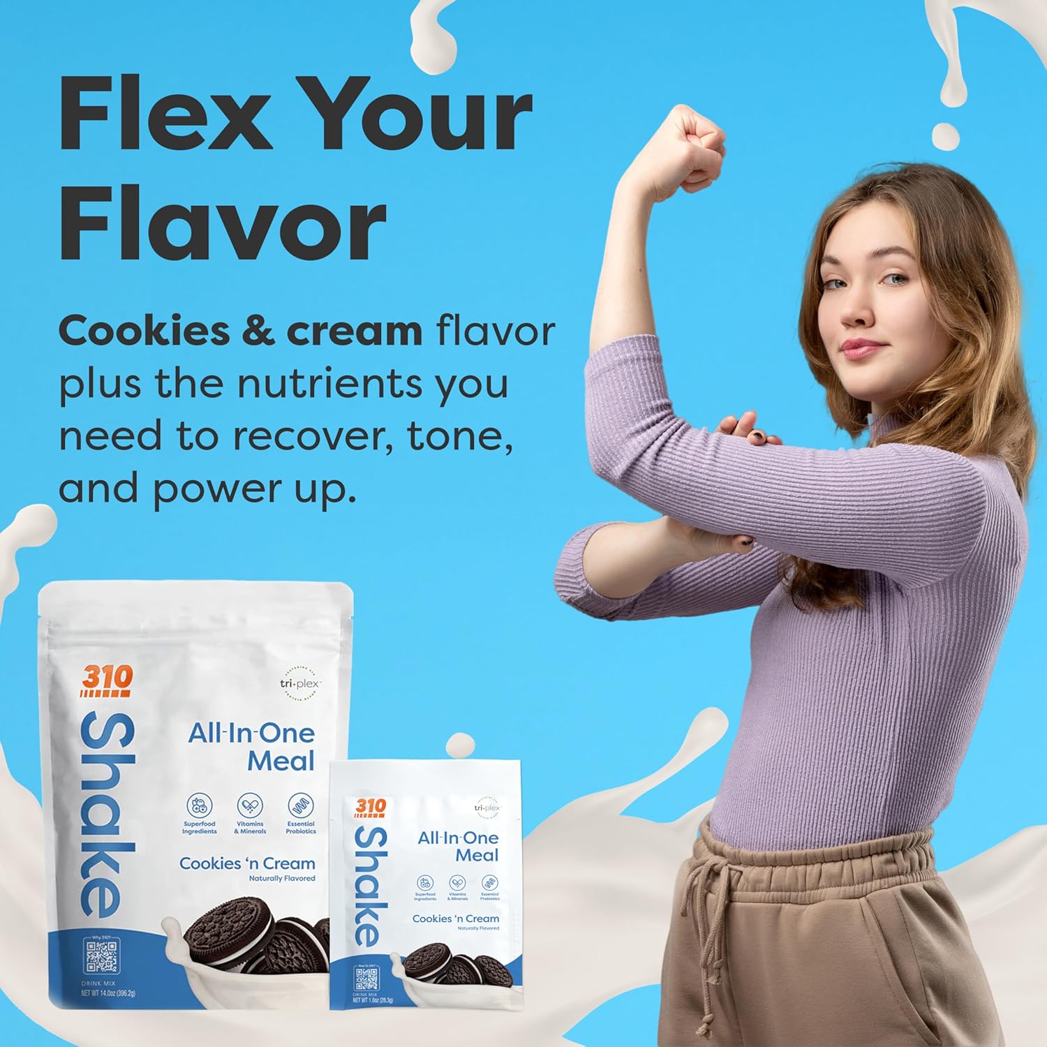 310 Nutrition All-in-One Meal Replacement Shake Starter Kit with Shaker Cup – High-Protein, Fiber-Rich Vegan Superfood Blend – Sugar-Free, Keto & Paleo Friendly, Low Carb – Cookies & Cream – 24 Individual Servings