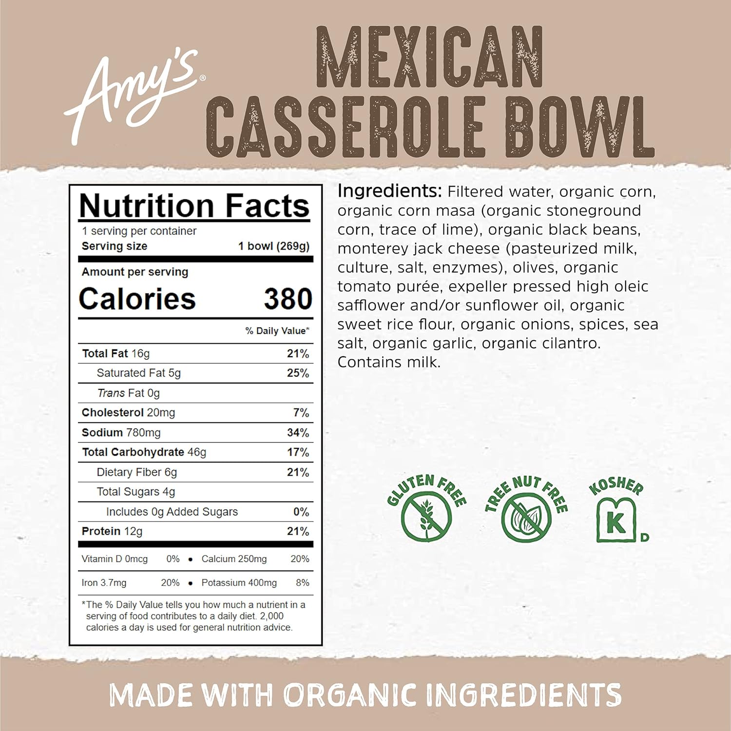 Amy’s Frozen Meals, Mexican Casserole Bowl, Made with Organic Tomatoes, Corn and Black Beans, Gluten Free, 9.5 oz.