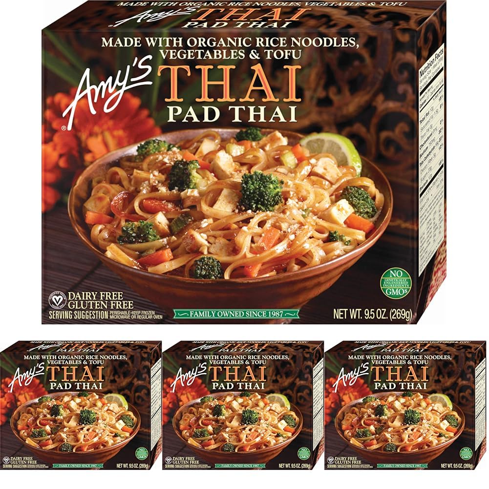 Amy’s Frozen Meals, Pad Thai, Made with Organic Rice Noodles, Broccoli and Carrots, Vegan & Gluten Free, 9.5 oz