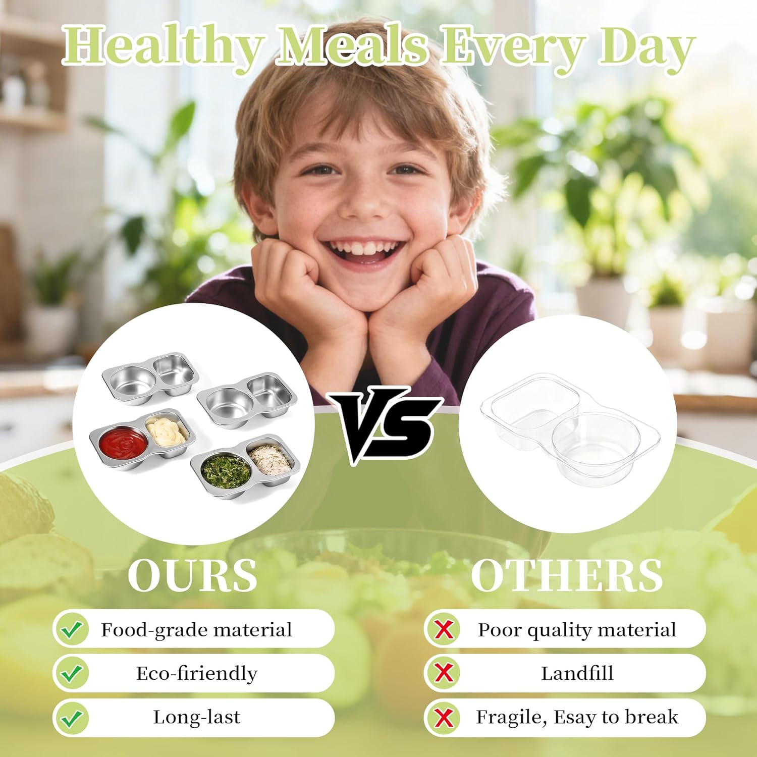 BEFOY Stainless Steel Snack Containers with Lids 4 Pack Lunchable Meal Prep Containers Reusable Meal Prep Lunch Containers for Adult Divided Stackable Bento Lunch Box for Home Travel