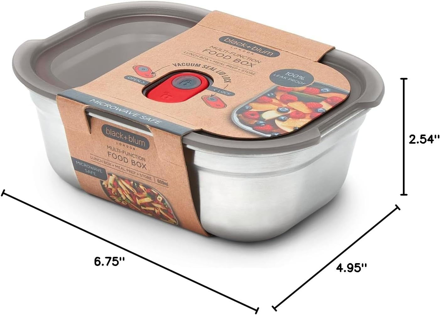 BLACK + BLUM Lunch Box – Meal Prep Containers Reusable for Picnic & Camping – Microwavable Stainless Steel Lunch & Dinner Food Storage Box with Leak Proof Lid – Dishwasher & Oven Safe – Small – 600ml
