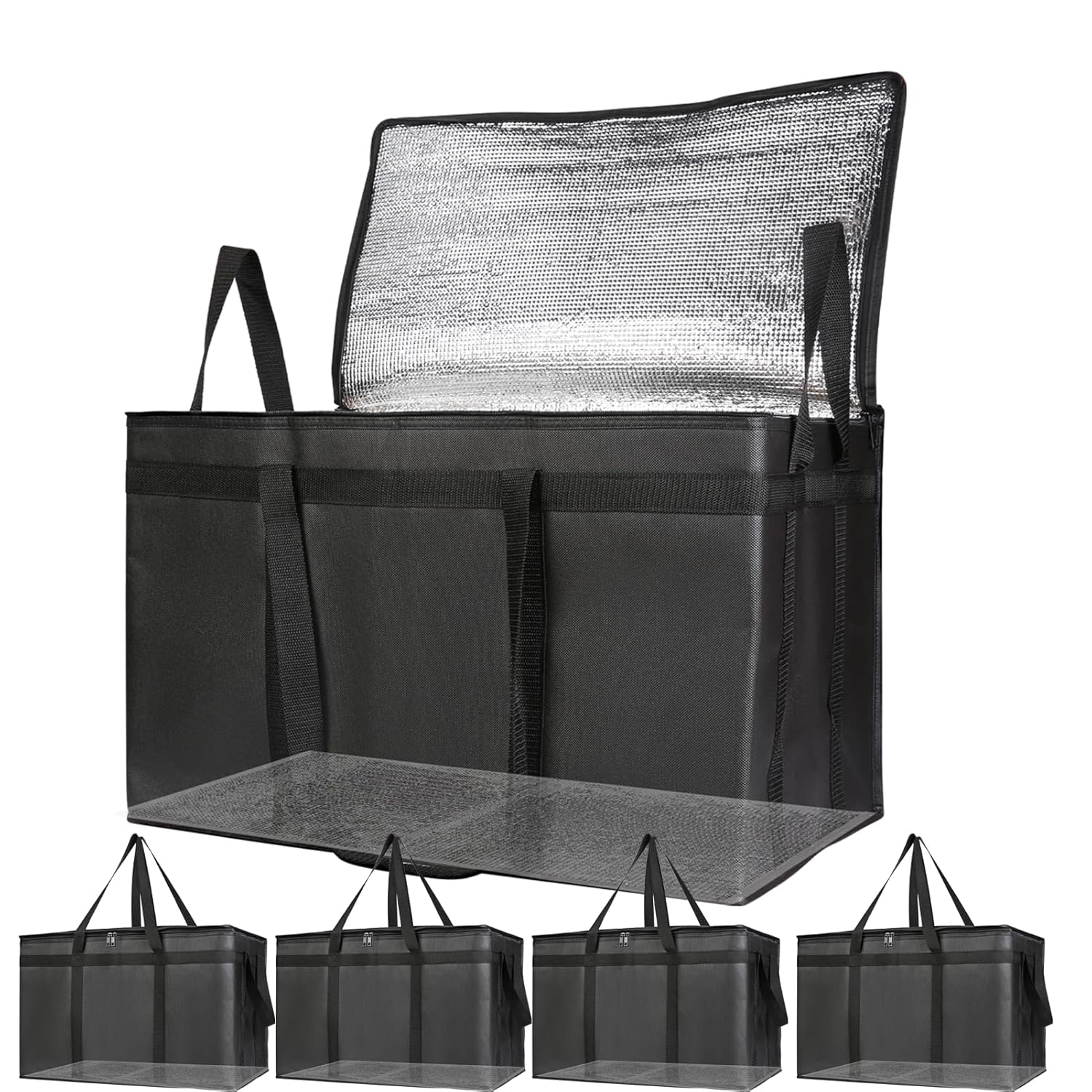 Bodaon 5-Pack Insulated Food Delivery Bag for Hot and Cold Meal, XXX-Large, Grocery Tote Insulation Bag for Catering, Pizza Warmer, Black