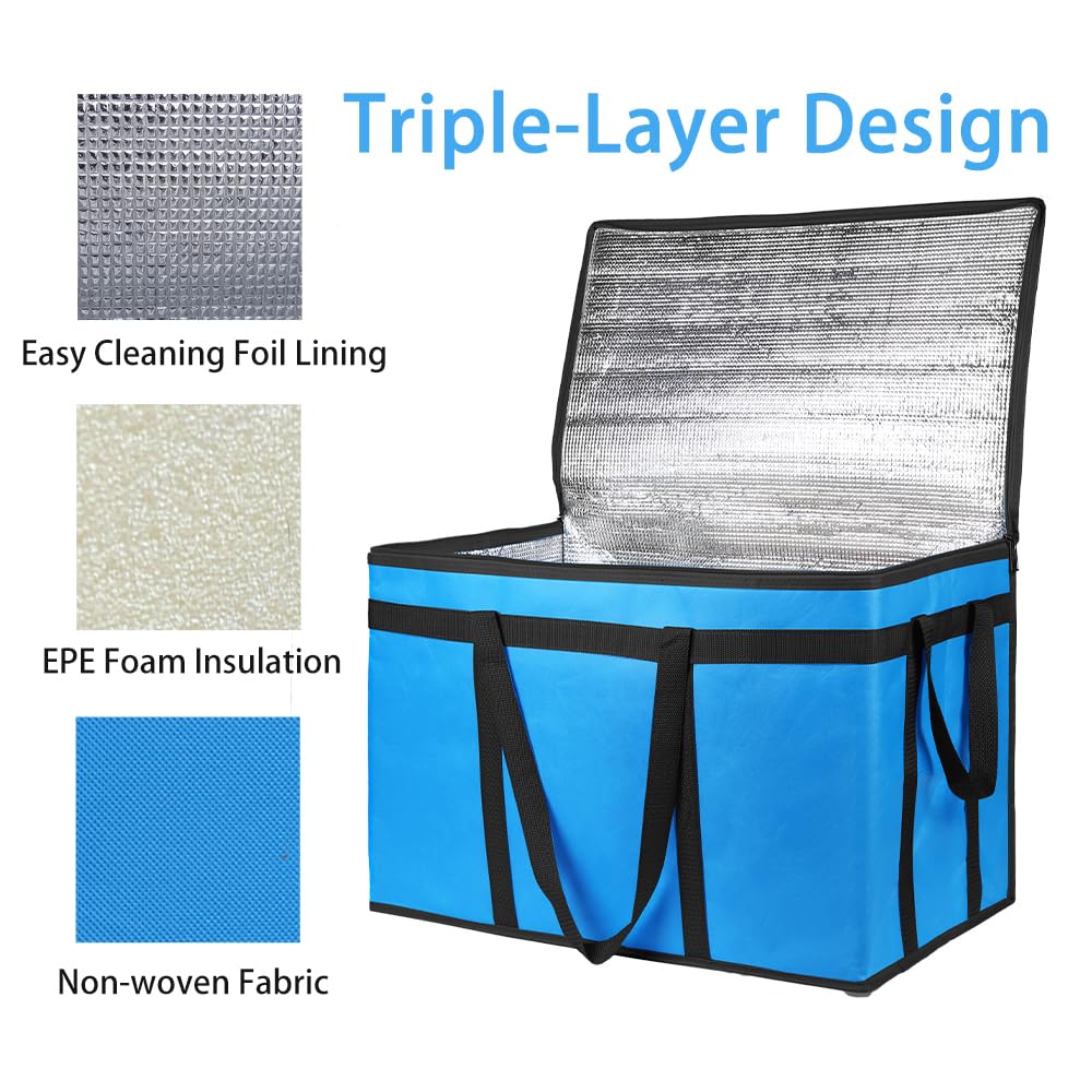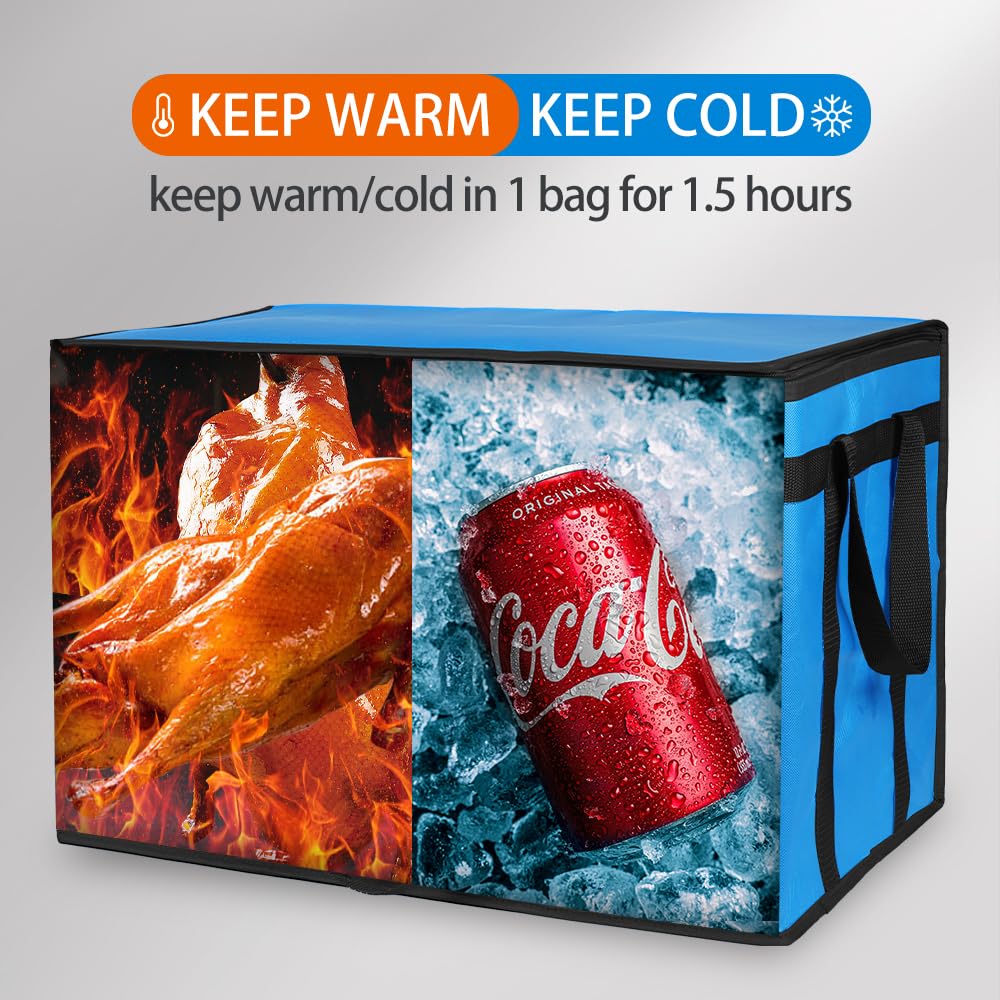 Bodaon Insulated Food Delivery Bag for Hot and Cold Meal, XXX-Large, Grocery Tote Insulation Bag for Catering, Pizza Warmer, Blue, 1-Pack
