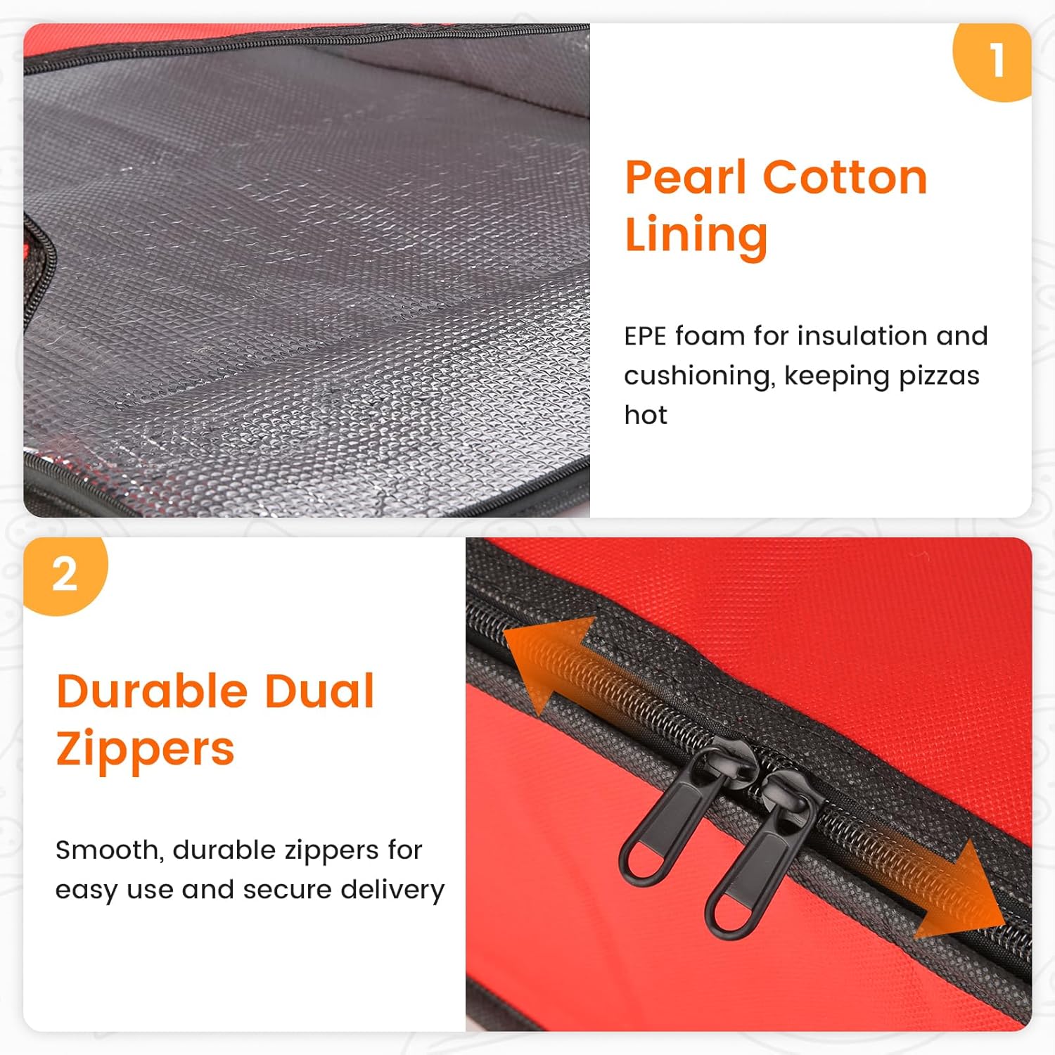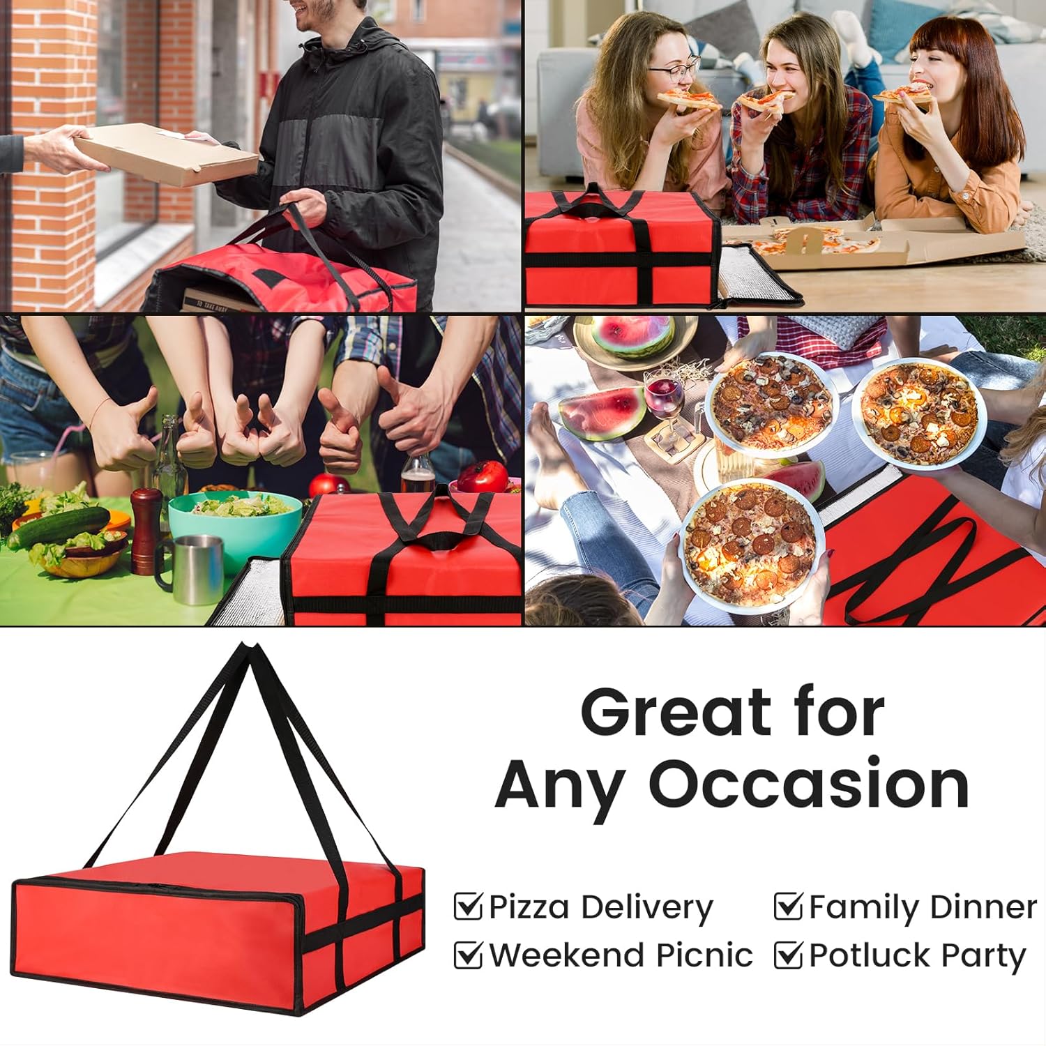 Bodaon Pizza Bags for Delivery, 24″ x 24″ x 6″ Insulated Pizza Delivery Bag Thermal Carrier, Catering and Food Warmer Bag for Hot Box Transport, Pizza Warmer Carrier for Delivery Drivers, Red, 1-Pack