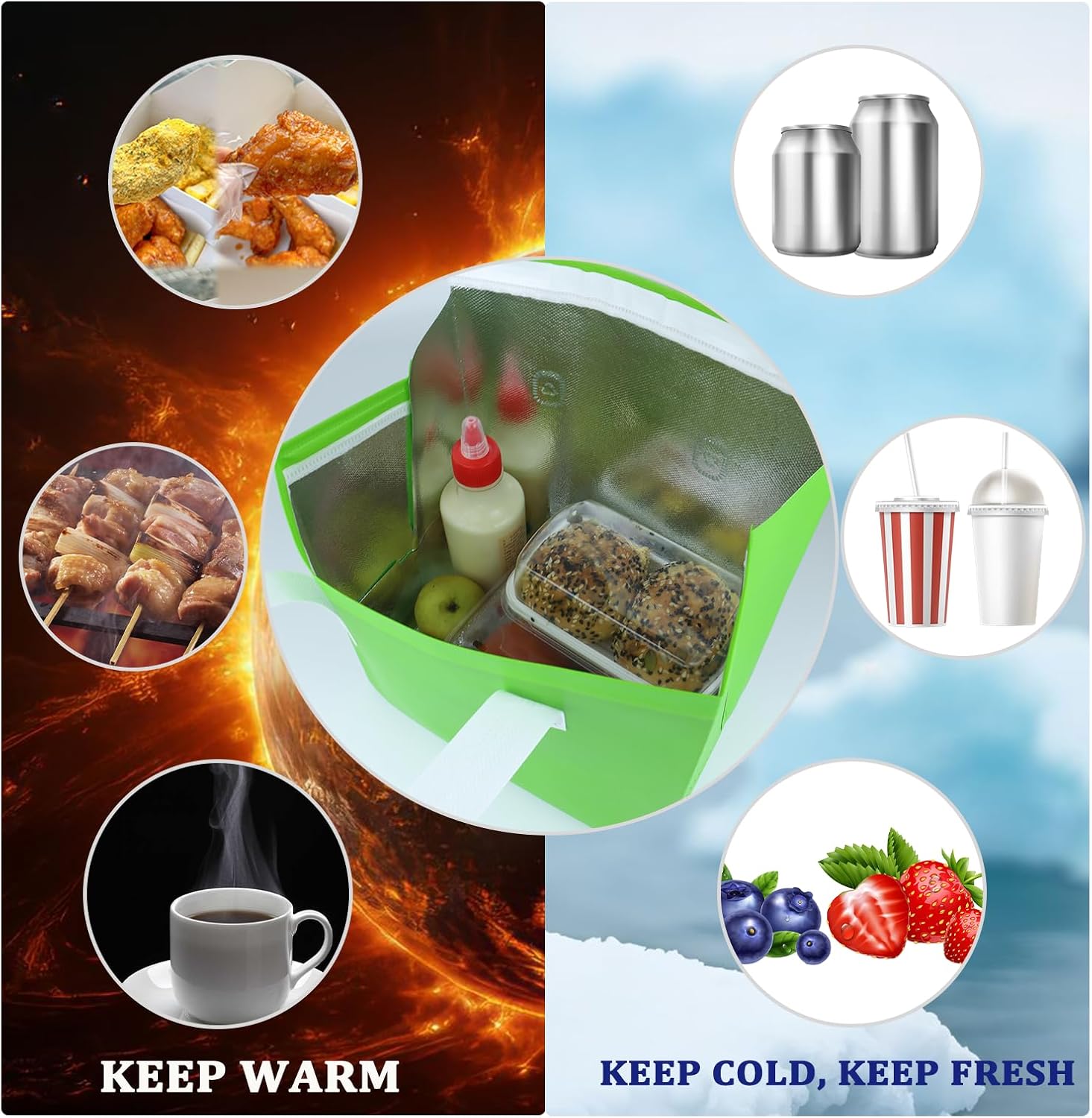- Can be used for shopping, picnics, camping, restaurants, food delivery, etc