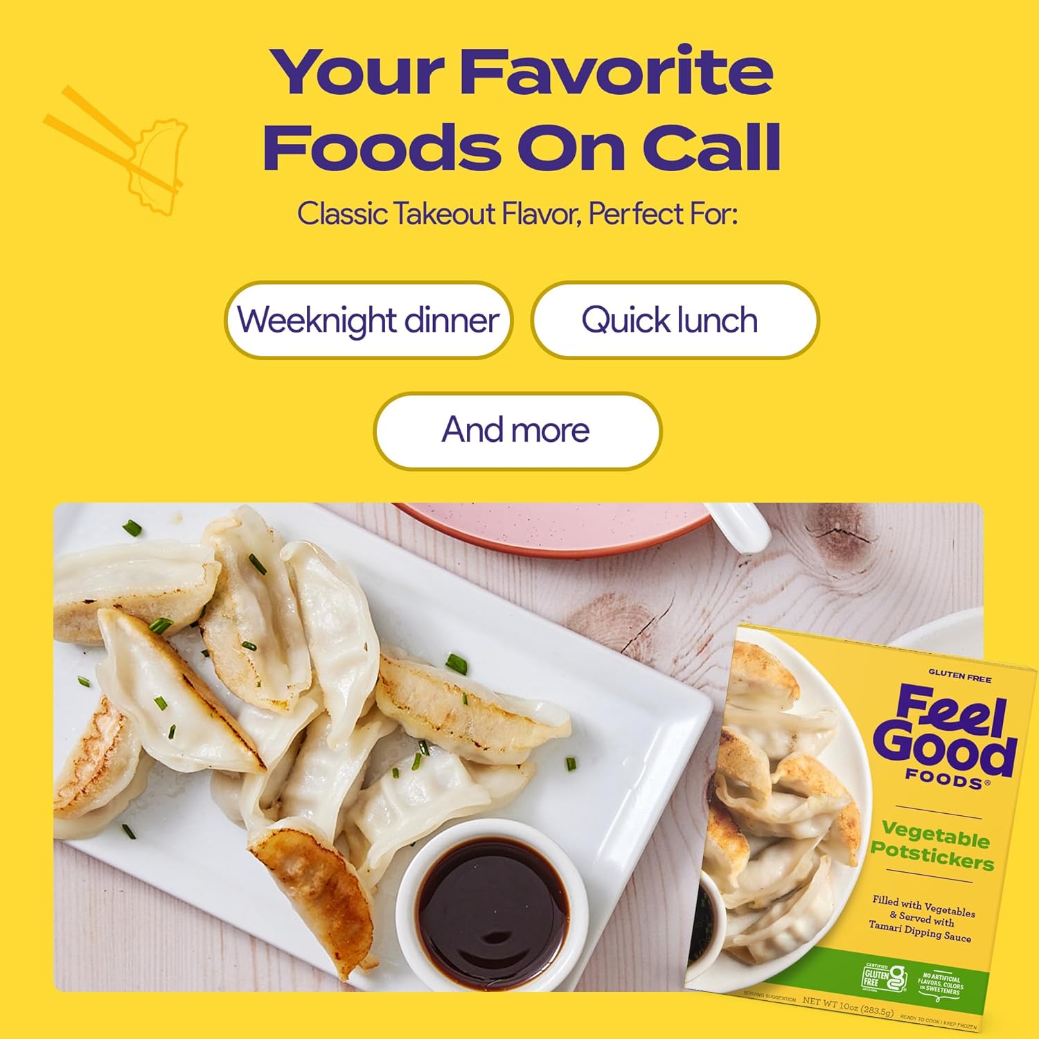Feel Good Foods Vegetable Potstickers 10oz Frozen Dumplings with Tamari Dipping Sauce, Gluten Free