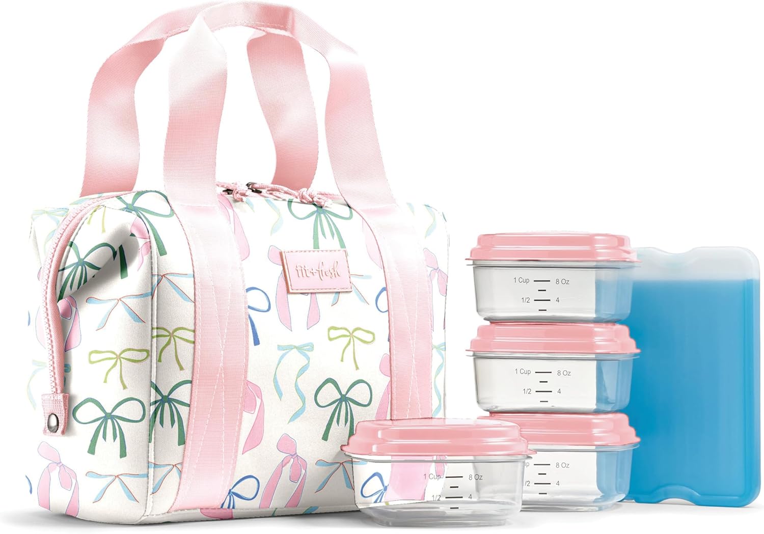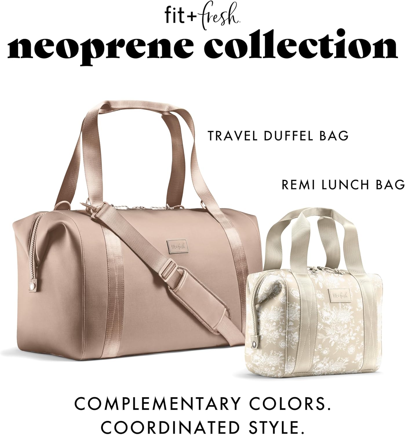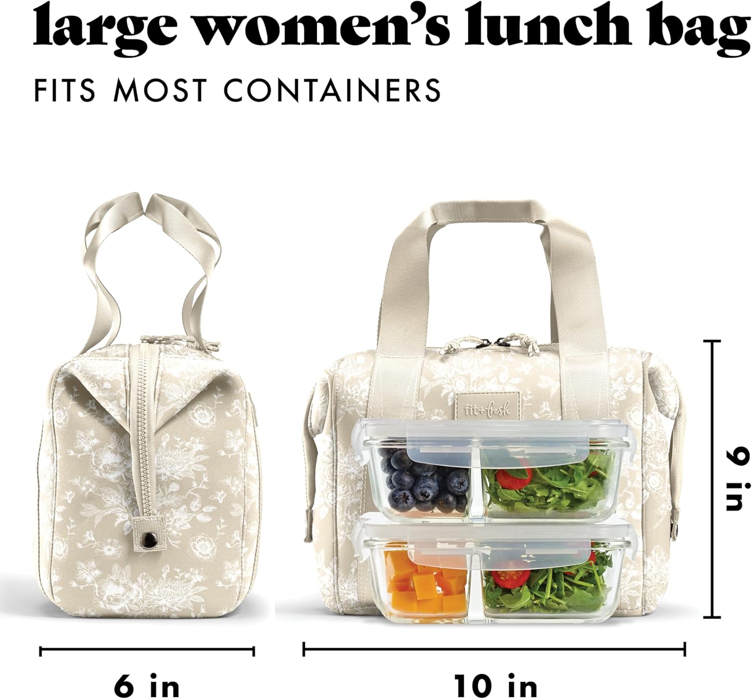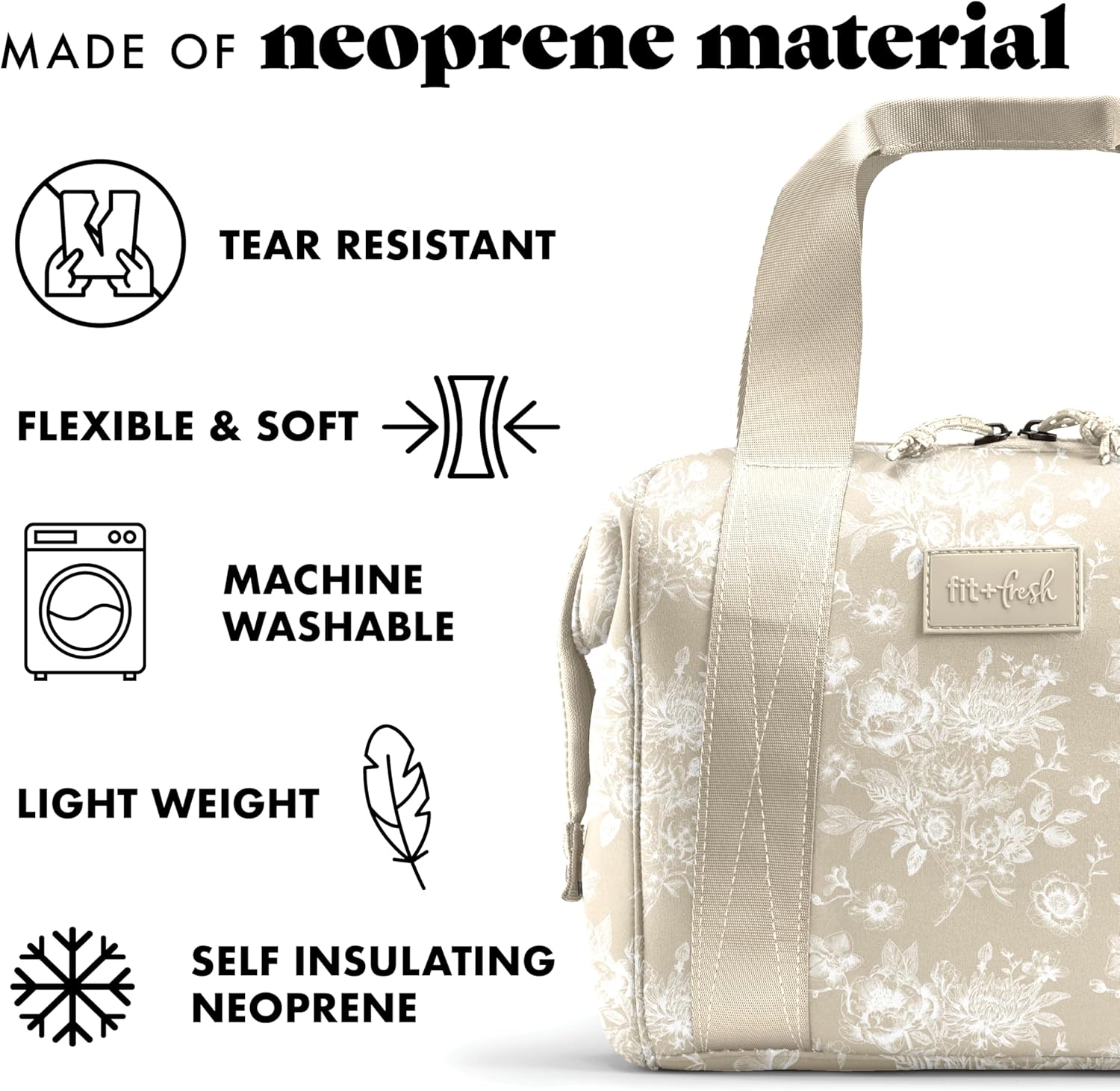 Fit & Fresh Remi Neoprene Lunch Bag For Women – Meal Prep Kit with Containers & XL Ice Pack, Self Insulating Neoprene-like Material, Machine Washable Lunch Bag, Tear & Stain-Resistant, Tan Toile