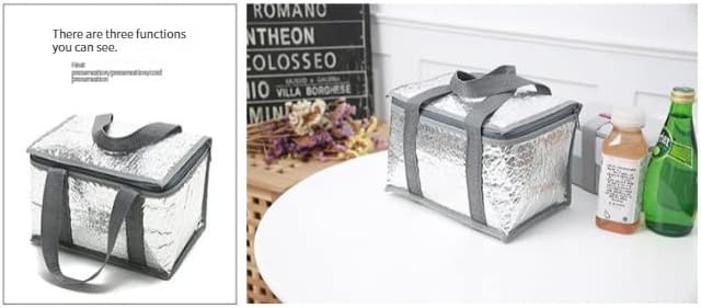 MAxba Reusable Grocery Shopping Tote Bag, Meal Delivery Bag, Insulated Cooler Bag, Waterproof, Standable, Sturdy Zipper,6l silver
