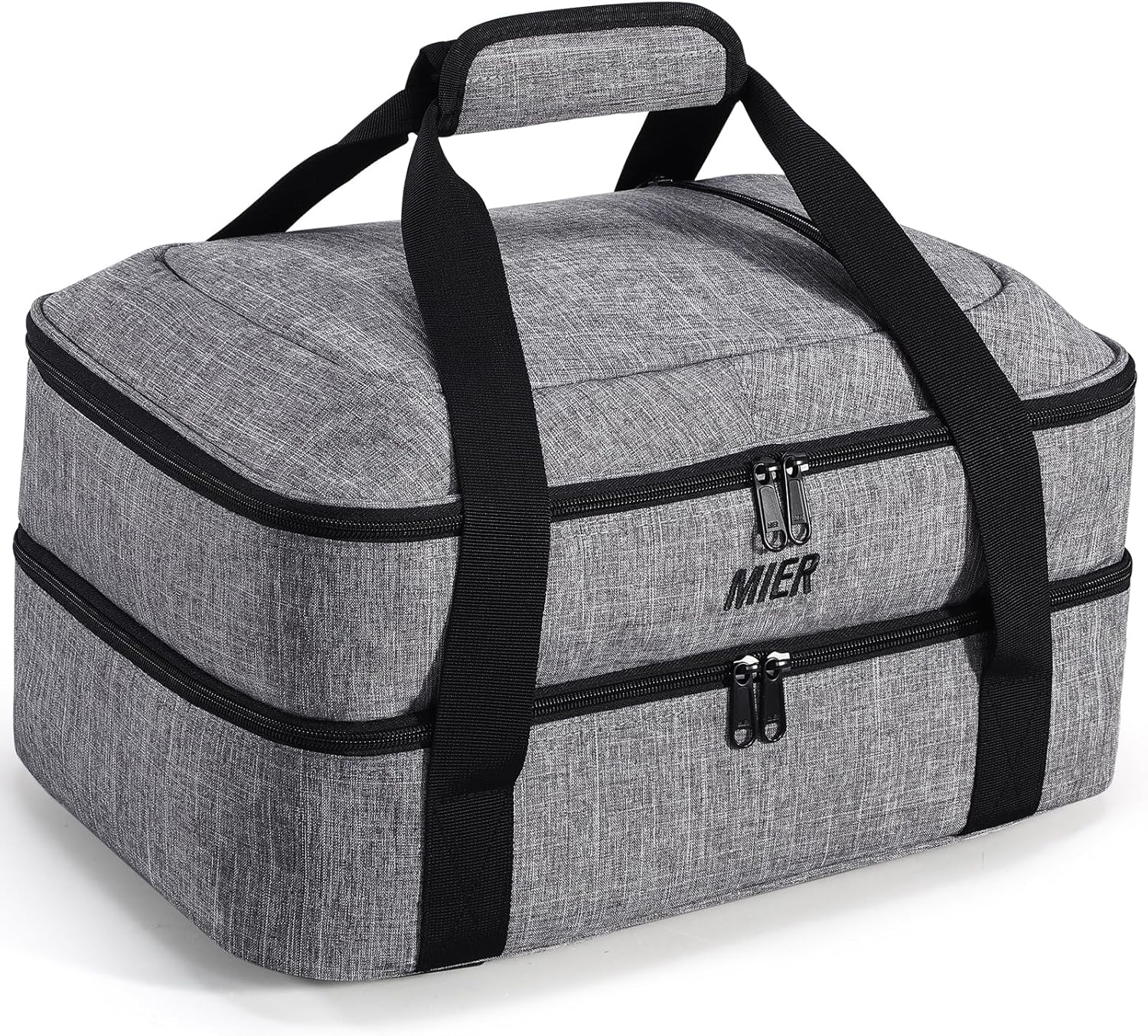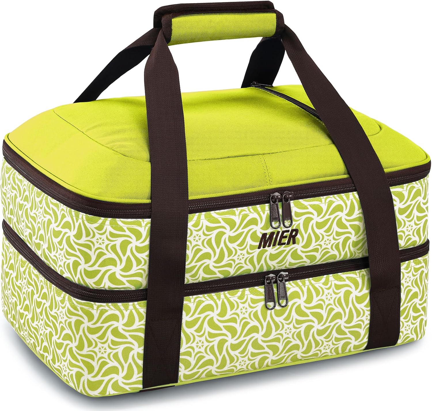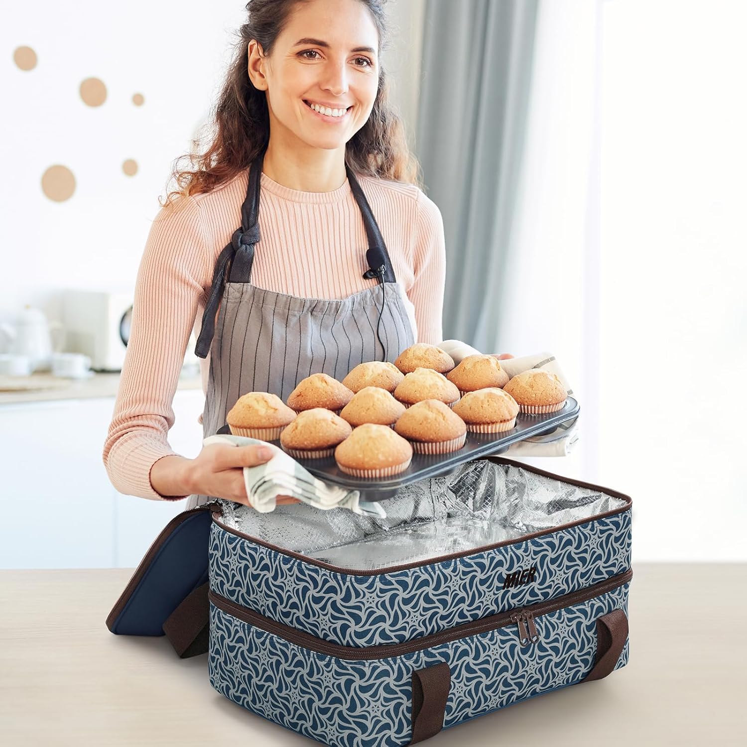 MIER Insulated Casserole Carrier Fits 9″x13″ Baking Dishes/Foil Pans, Double Food Carriers Bag Thermal Holder for Hot or Cold Food Lasagna Lugger Potluck Parties Picnic Travel, Deep Blue
