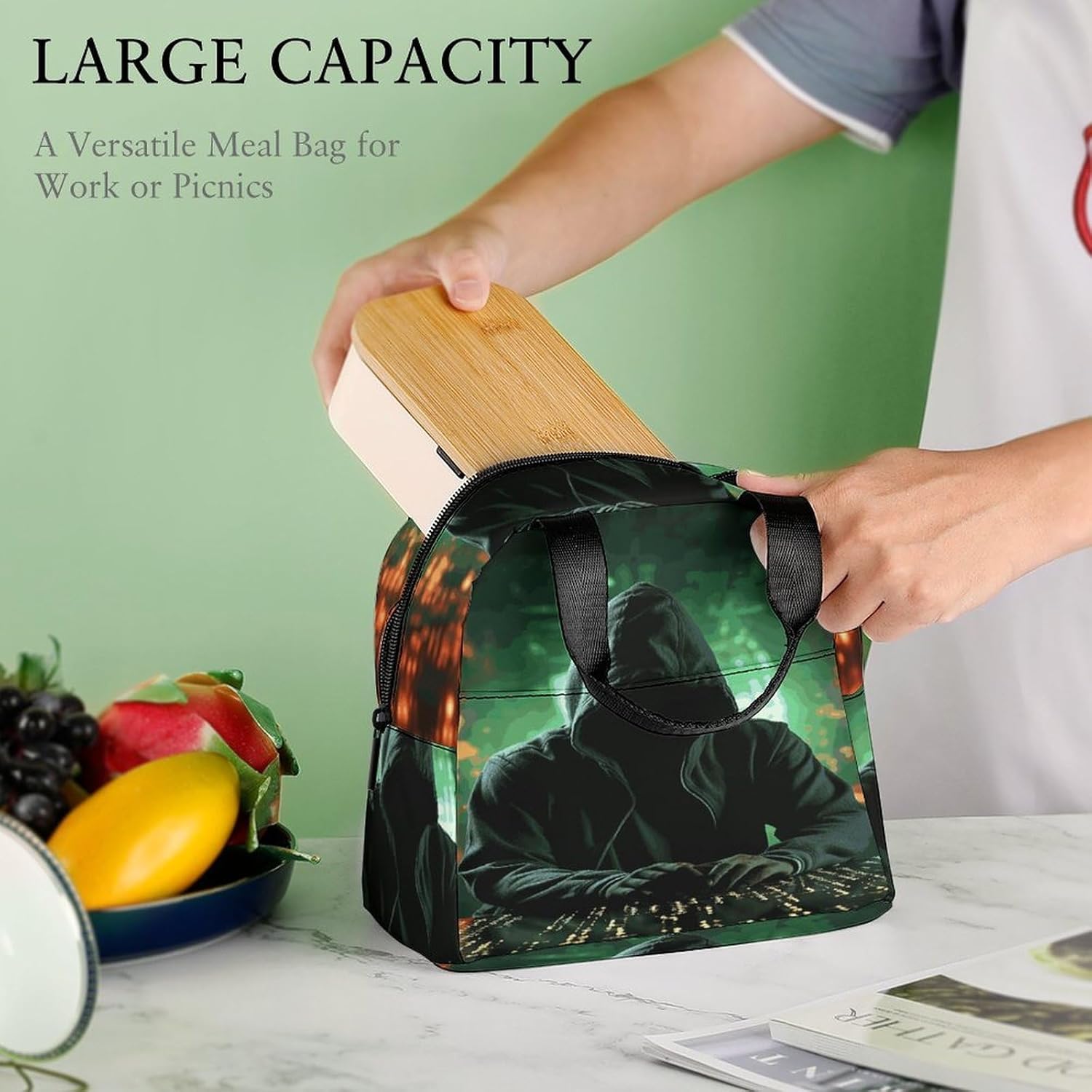 -Flexible container compatibility: suitable for different sizes of food containers, offering versatility for various meal ice cooler bag