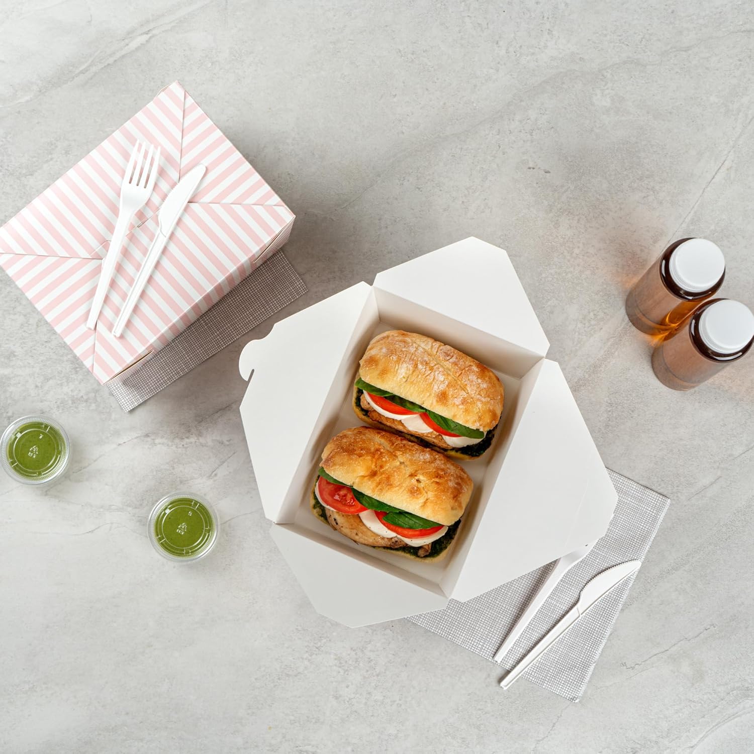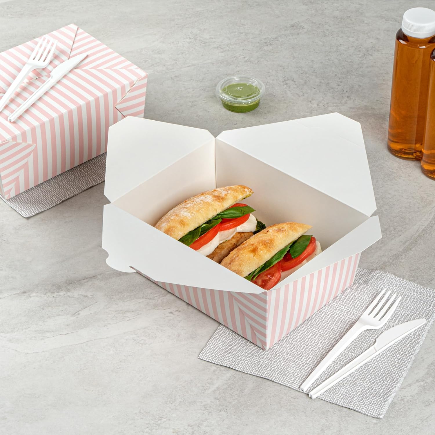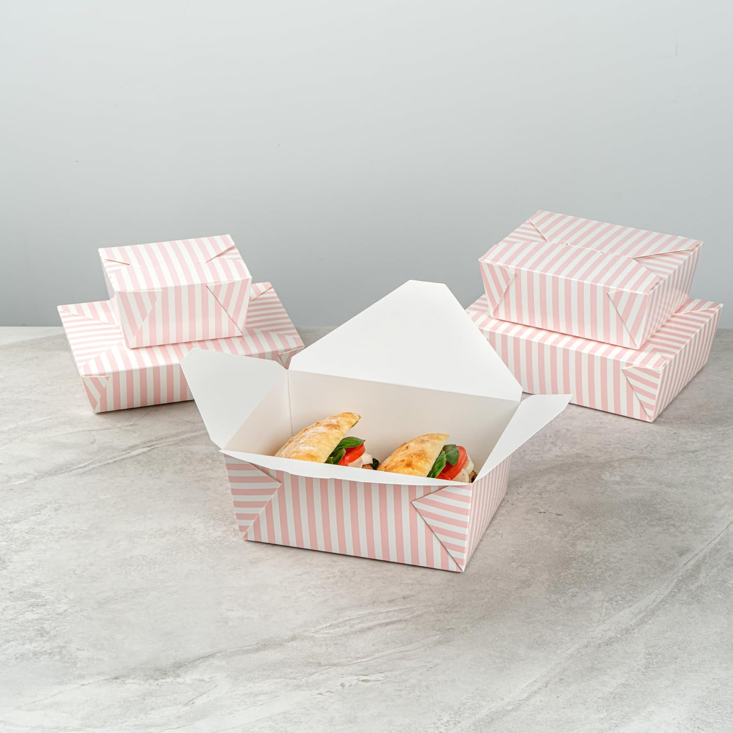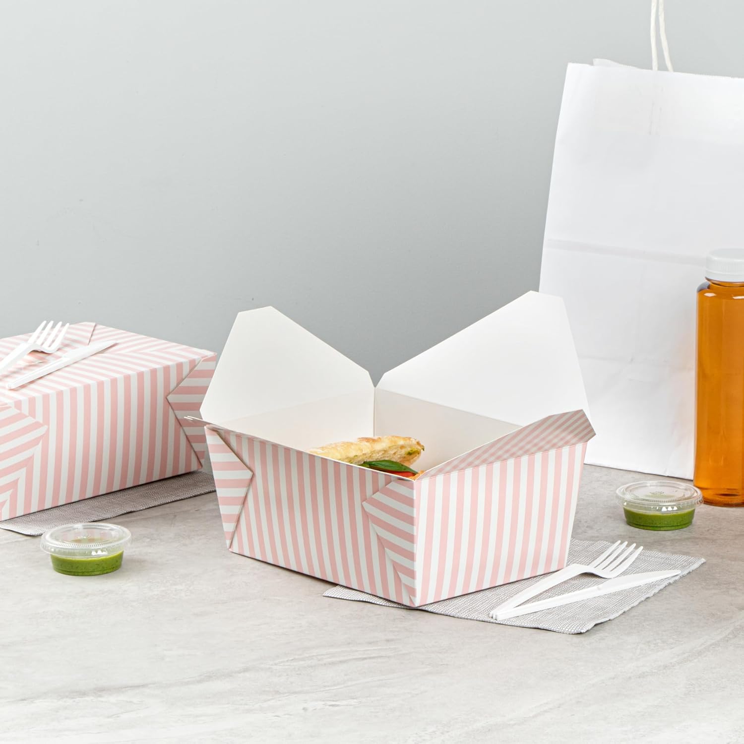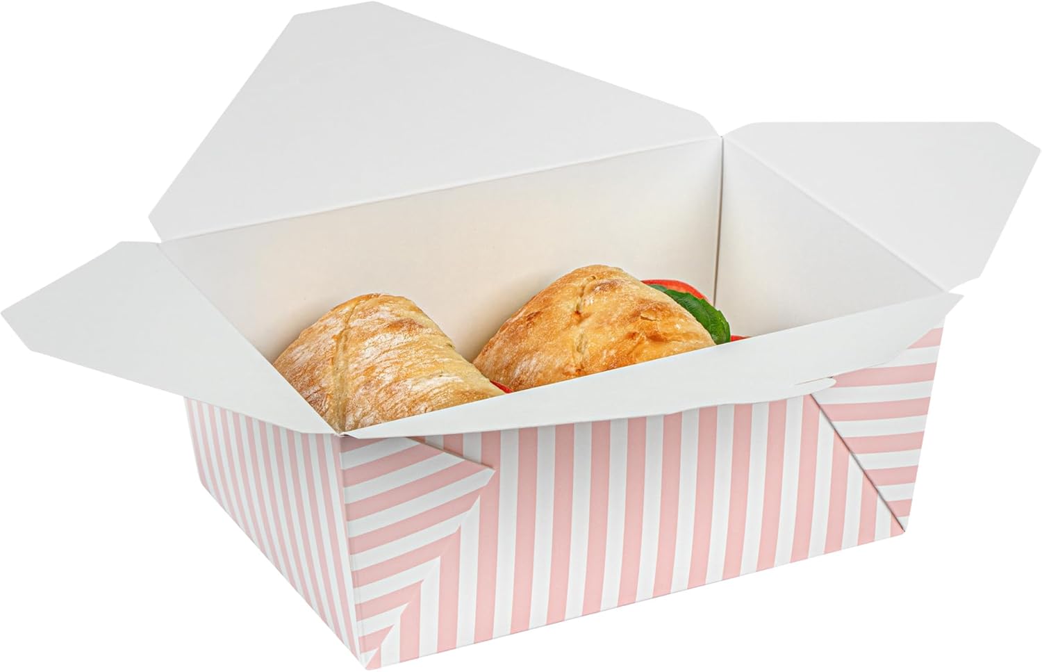 Restaurantware-Bio Tek 8.5 x 6.2 x 3.5 Inch Food Containers, 200 Durable Takeaway Boxes – Disposable, Striped, Pink And White Paper 98 Ounce Takeout Boxes, Rectangle, For Takeouts And Delivery