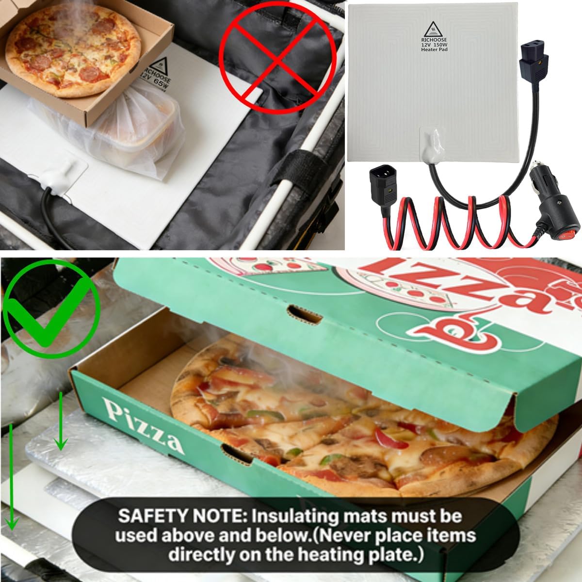Essential Duo for Hot Deliveries: 12V 65W Heater Pad + Heat-Resistant Delivery Bags