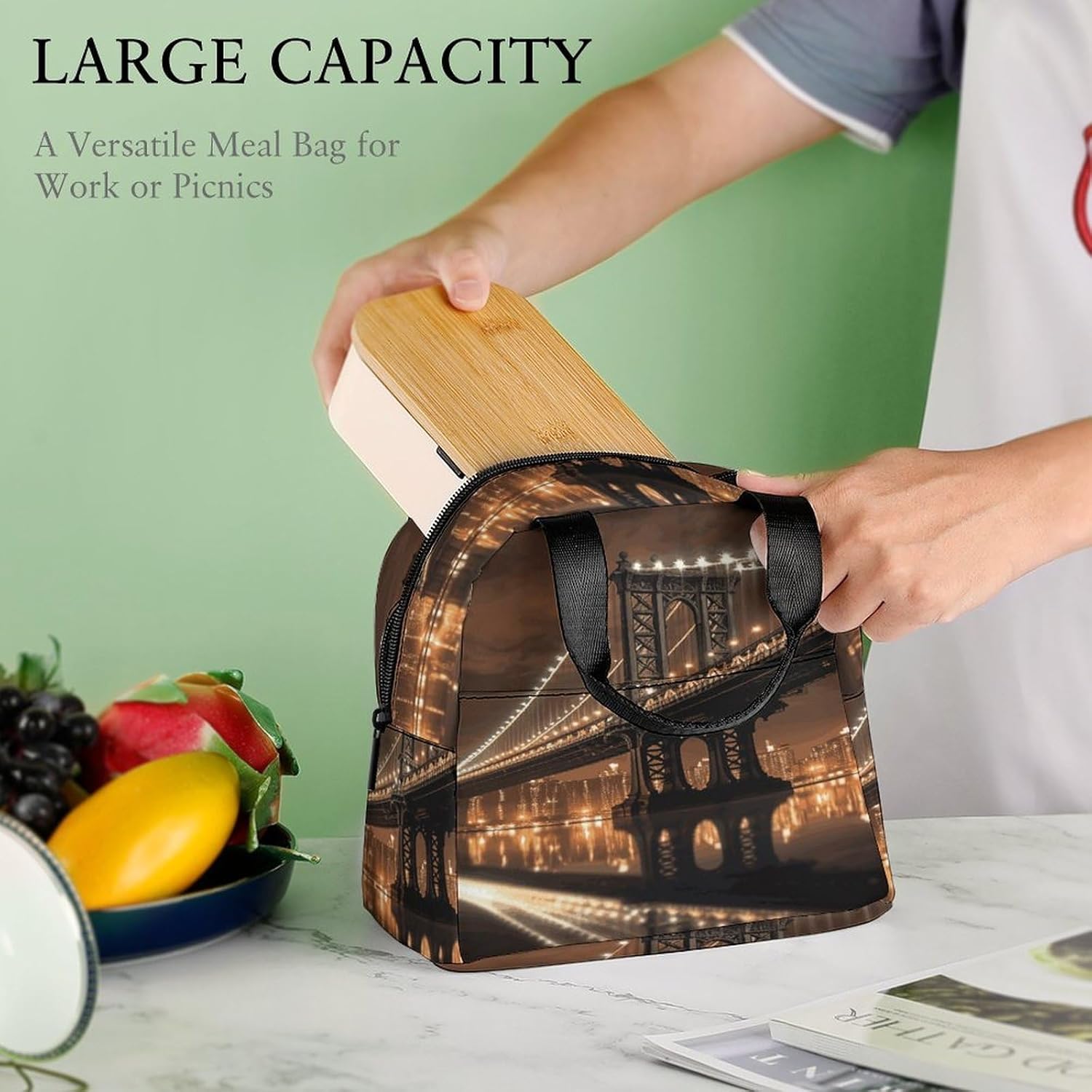 - From urban commutes to weekend getaways,this insulated meal bag serves multiple roles: a dependable daily lunch bag,a compact picnic bag for traveling,or a supplementary waterproof coolers solution.Thanks to heat transfer printing detailing,it stands out with clean aesthetics.Use it as a thermal insulated bag with hard bottom for stability,or rely on its foldability when storage space is limited.