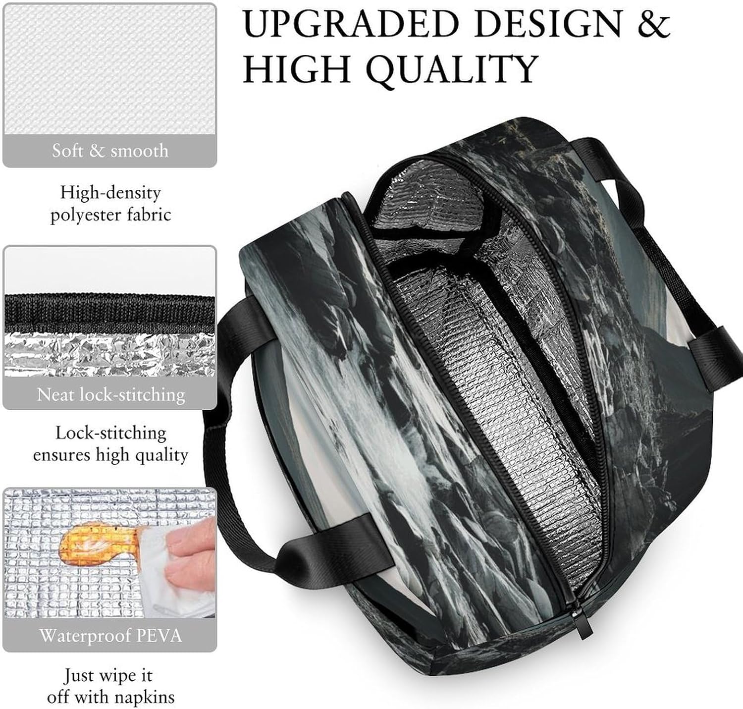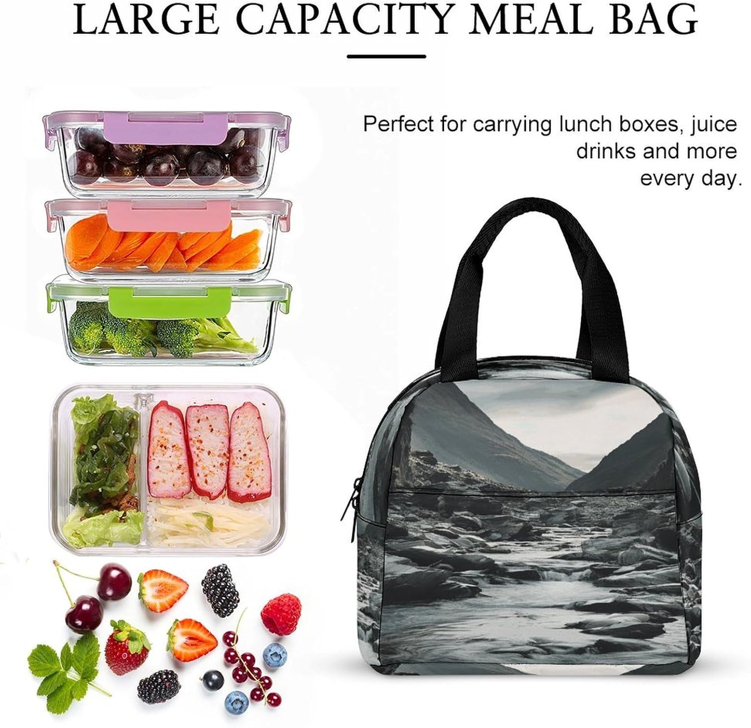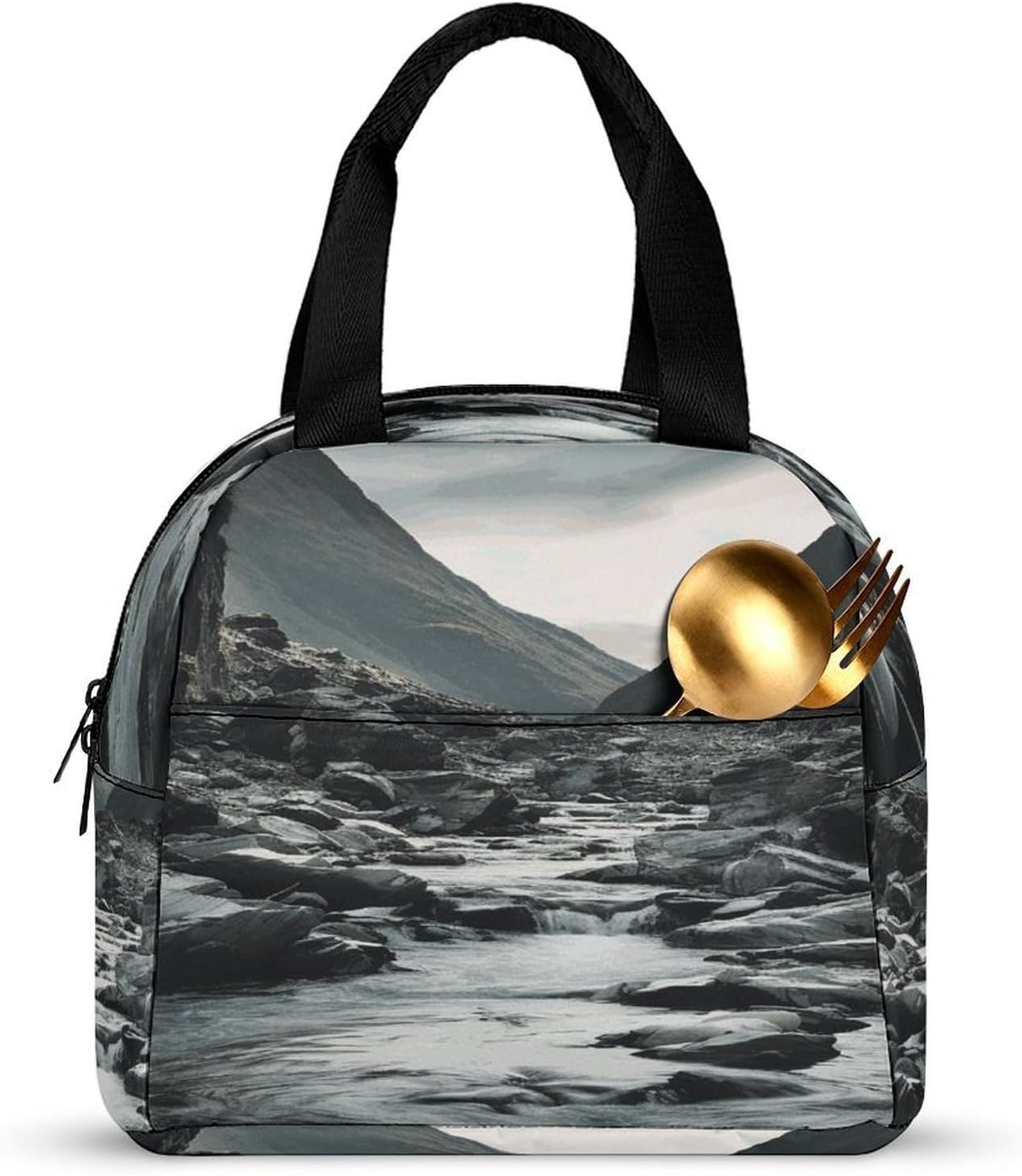 - Crafted from premium polyester,this portable River And Gray Rocks insulated bag features a robust yet lightweight design that maintains shape after repeated use.The exterior is smooth,while the interior includes a built-in aluminum foil layer insulated box for effective thermal retention.Combined with a sturdy metal zipper,the structure ensures reliable closure and easy access.