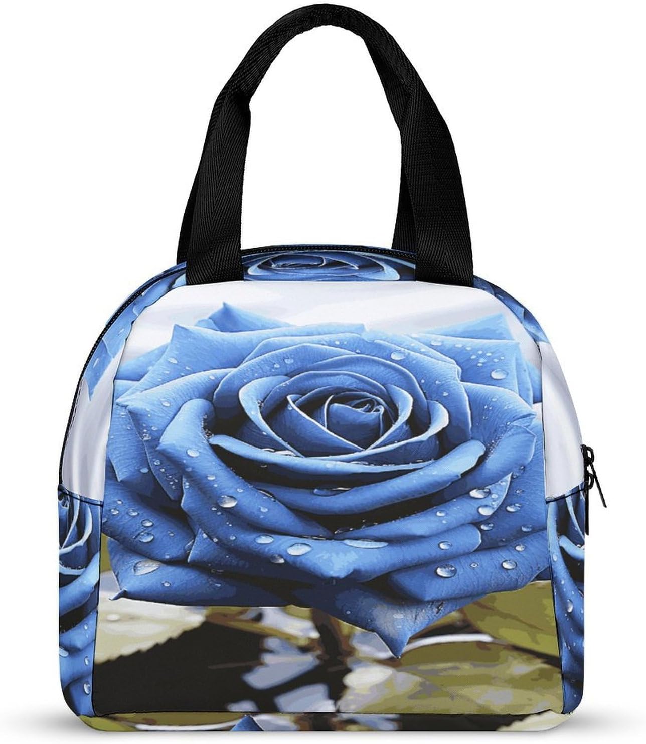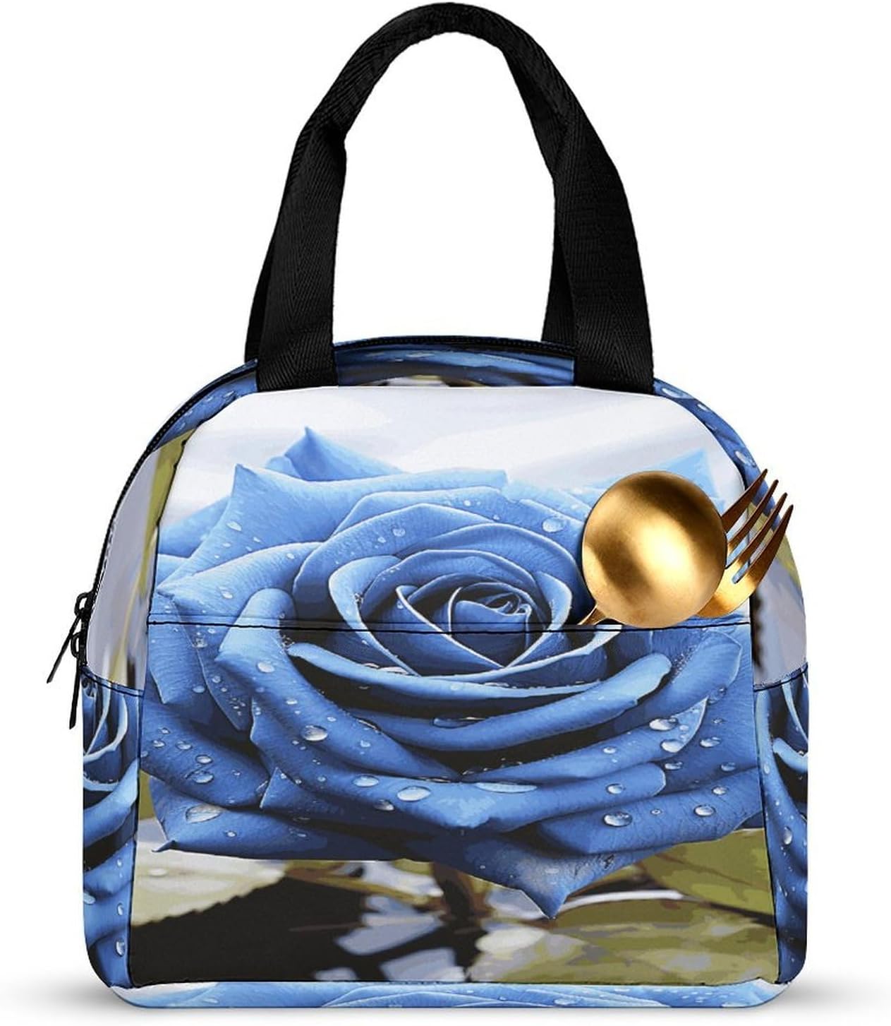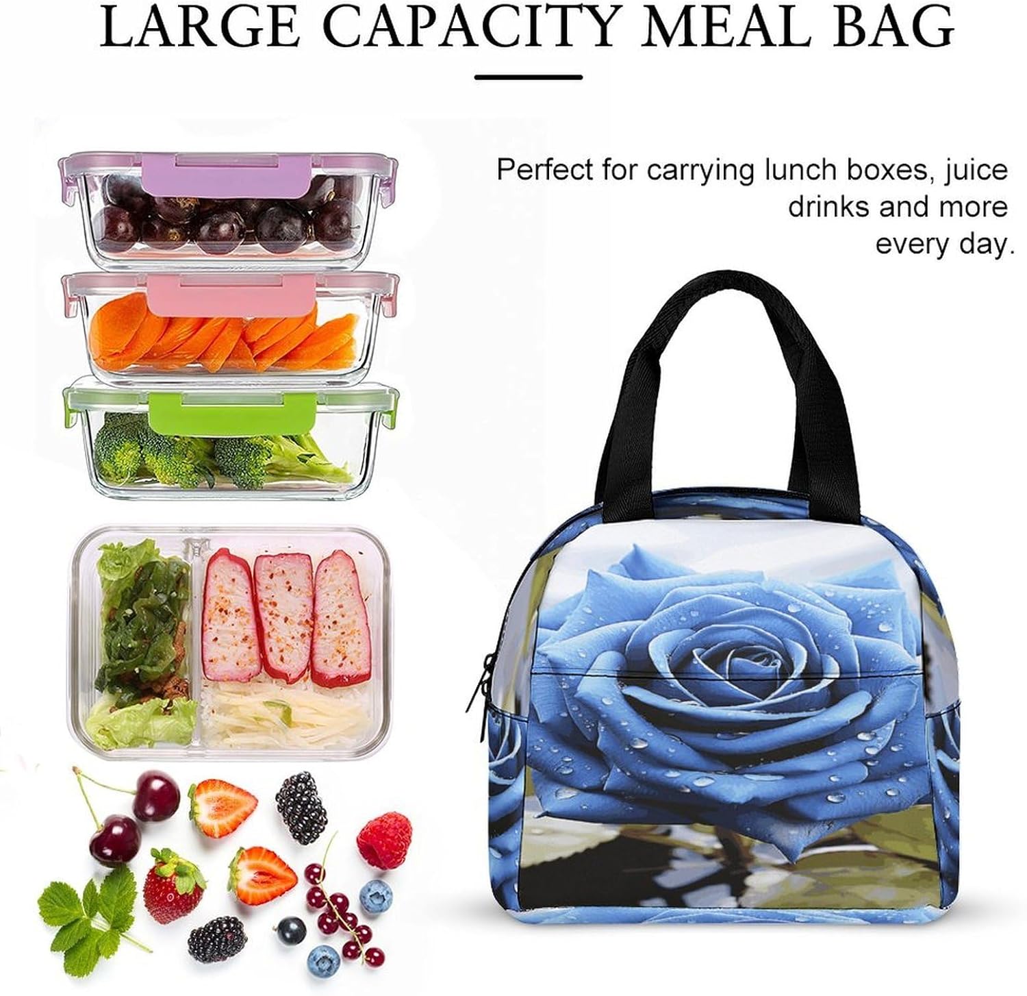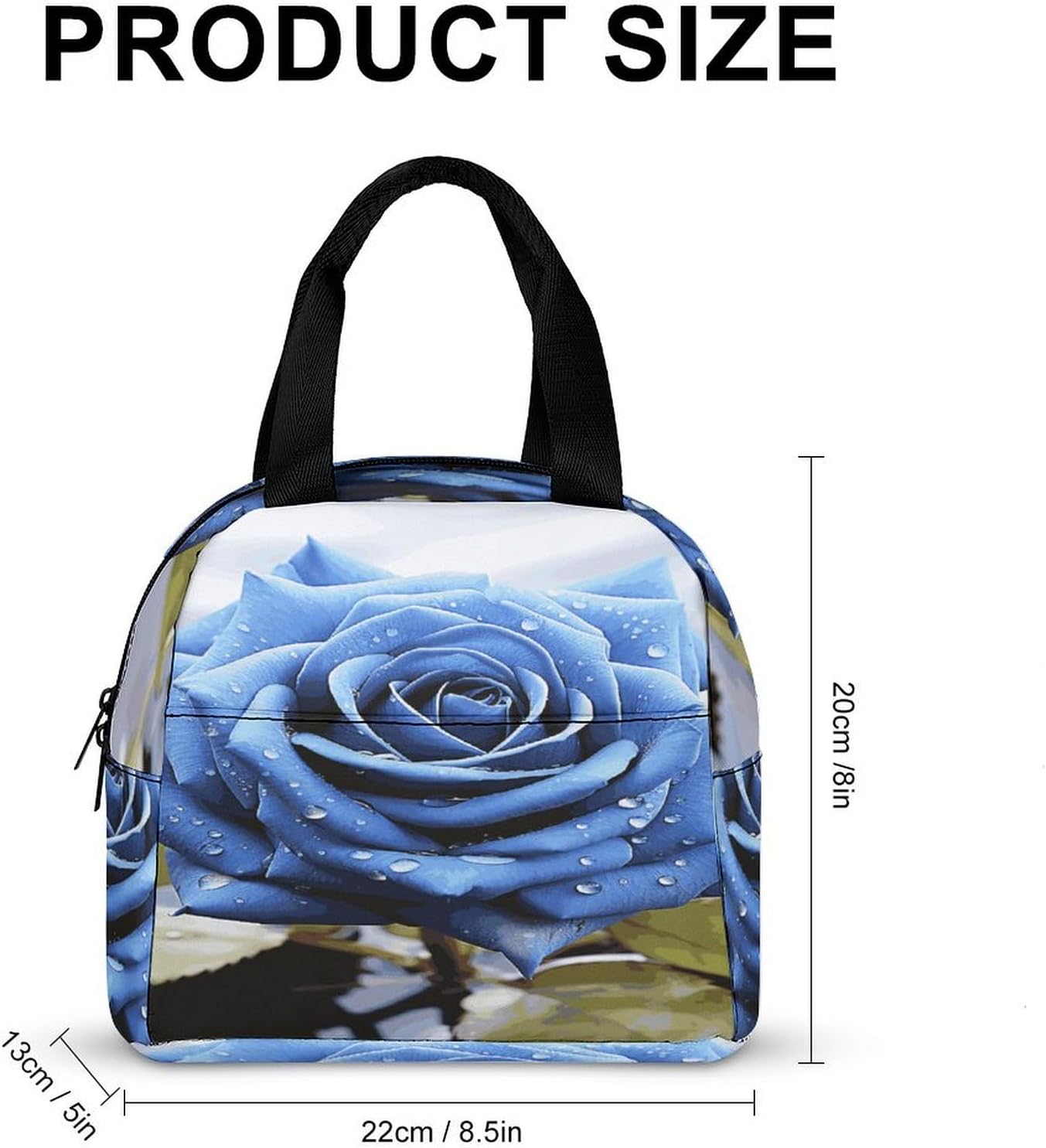 Romantic Blue Rose Lunch Box Reusable Cooler Tote with External Pocket Large Capacity Insulation Bag Leakproof Food Delivery Bags for Cold Meal for Work And Picnic