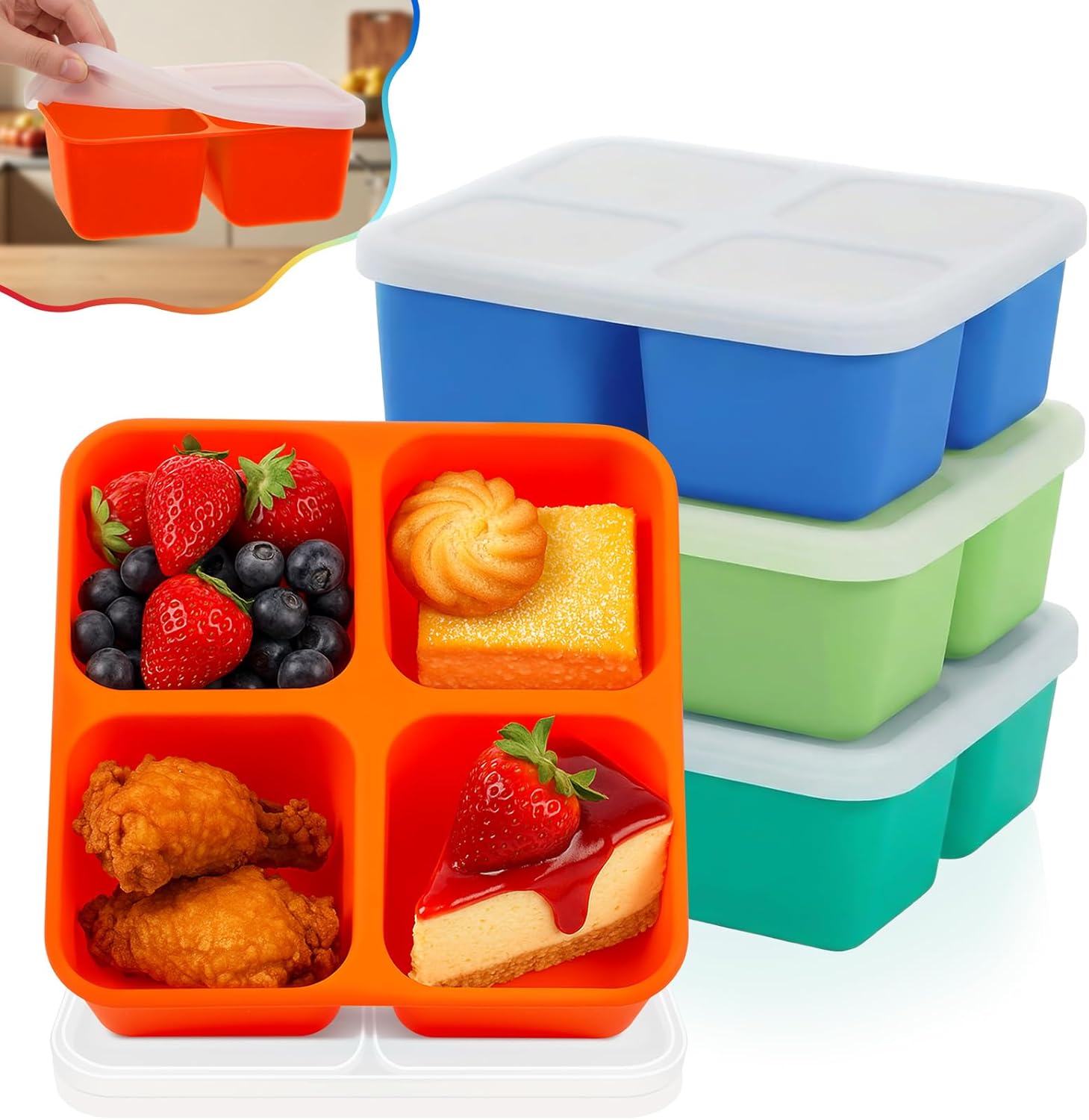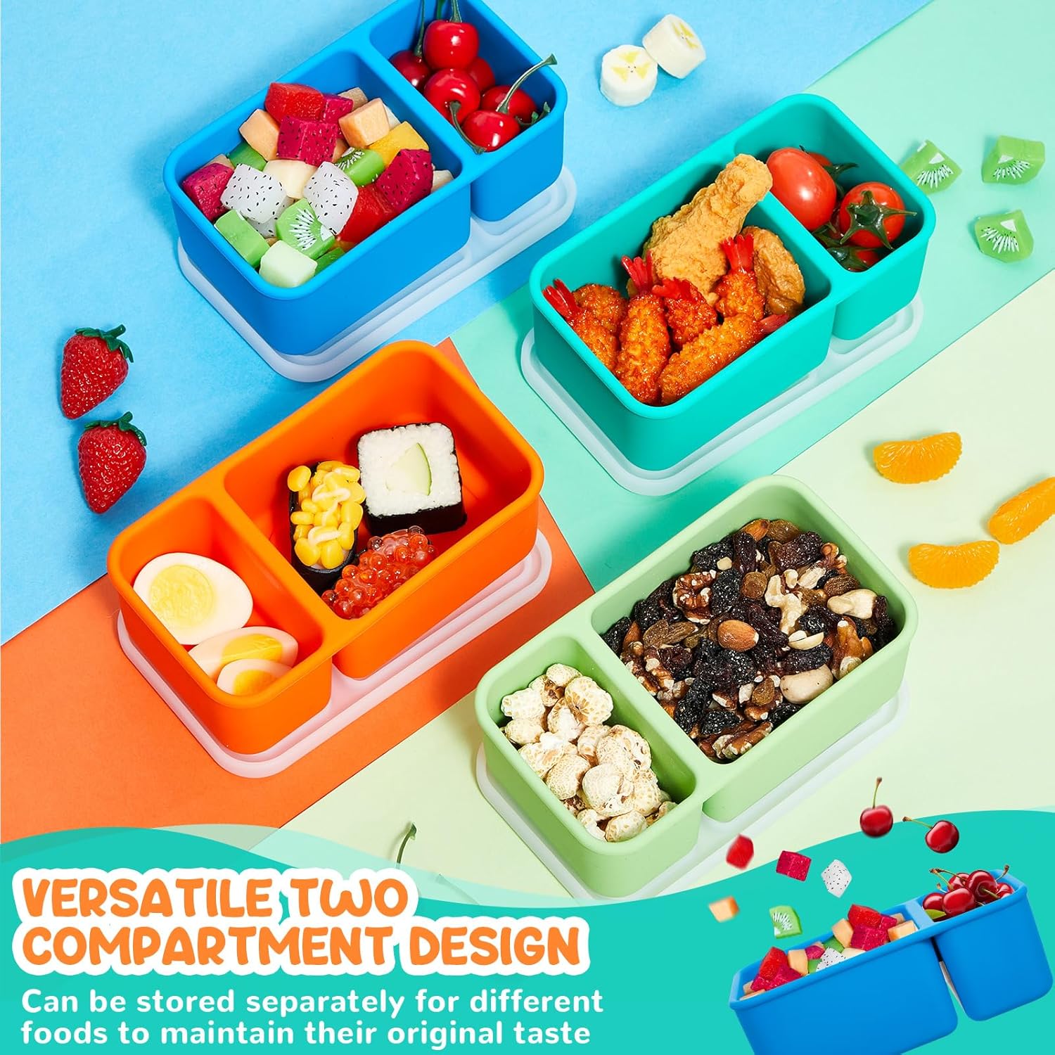 Roshtia 4 Pack Silicone Food Containers with Lids, Reusable Packs Bento Lunch Box for Meal Prep Food Storage, Microwave Dishwasher Safe(2 Compartment,Light)