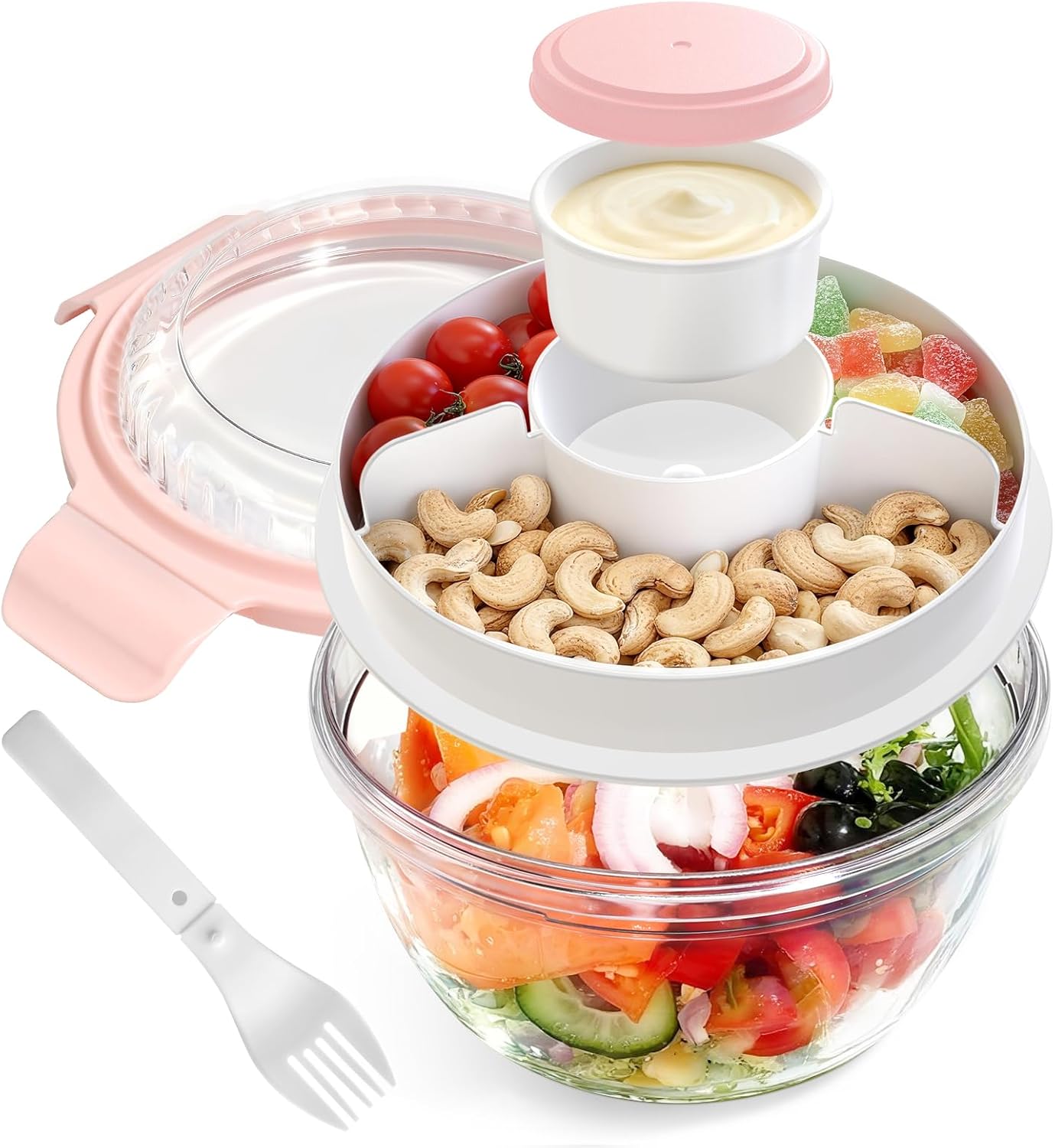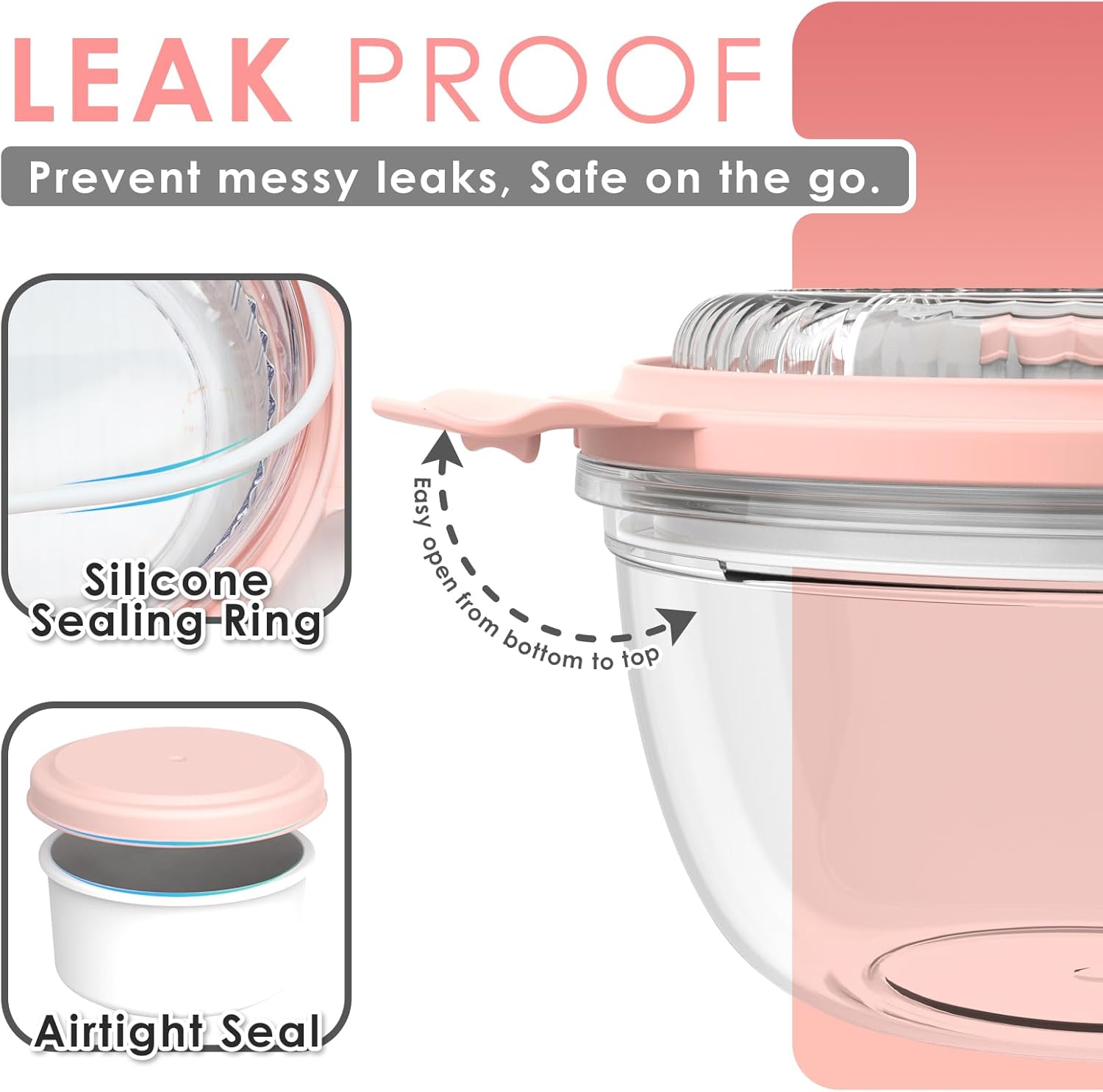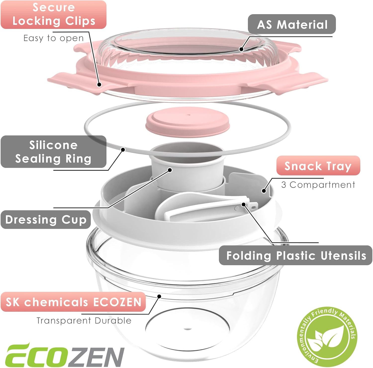 WHALEHOUSE 2-Pack 33 OZ Clear Eco-friendly SK chemicals ECOZEN Salad Container Sets, Portable Plastic Salad Bowls with Lid, Leak-Proof Dressing Container, Bento Lunch Box for Meal Prep & Food Storage