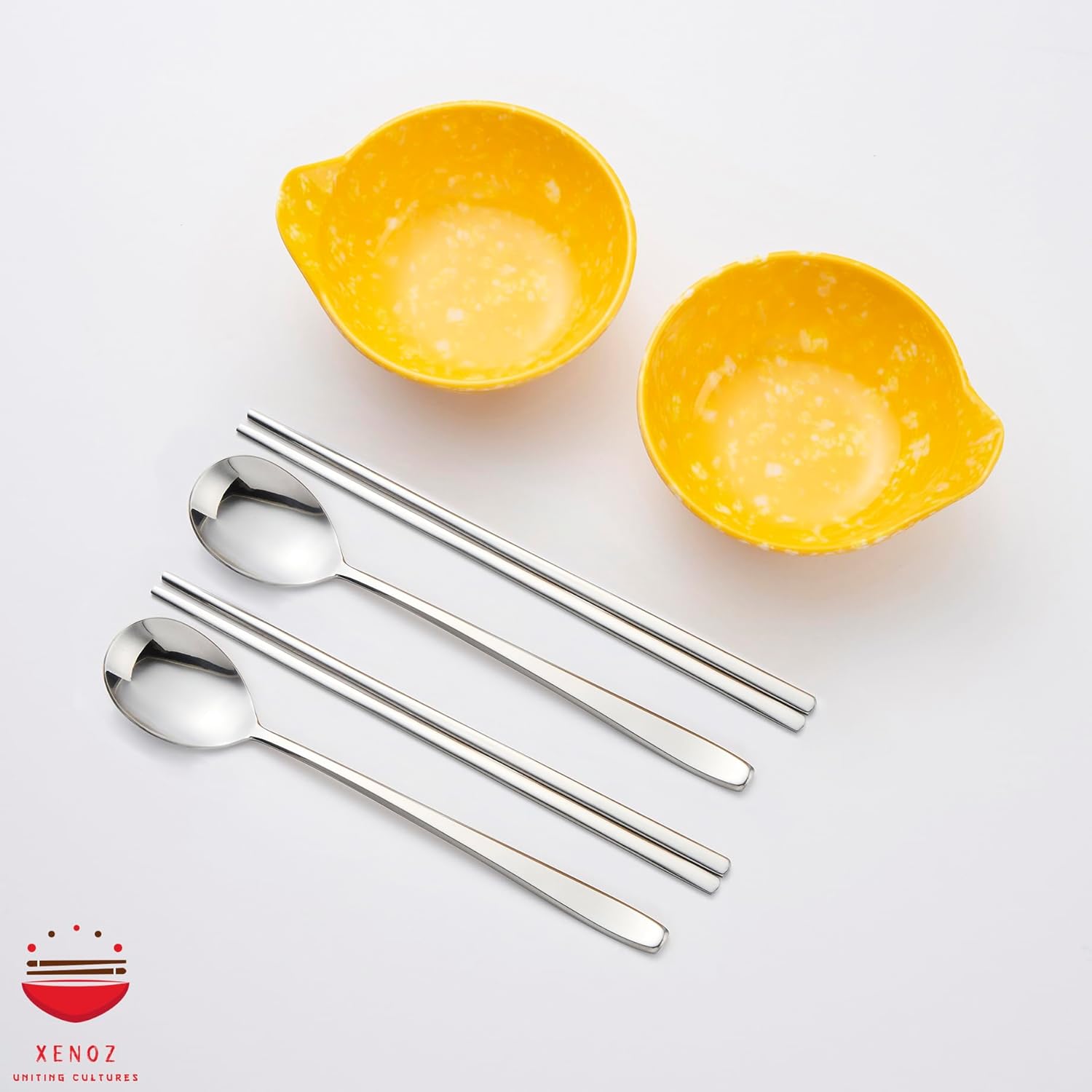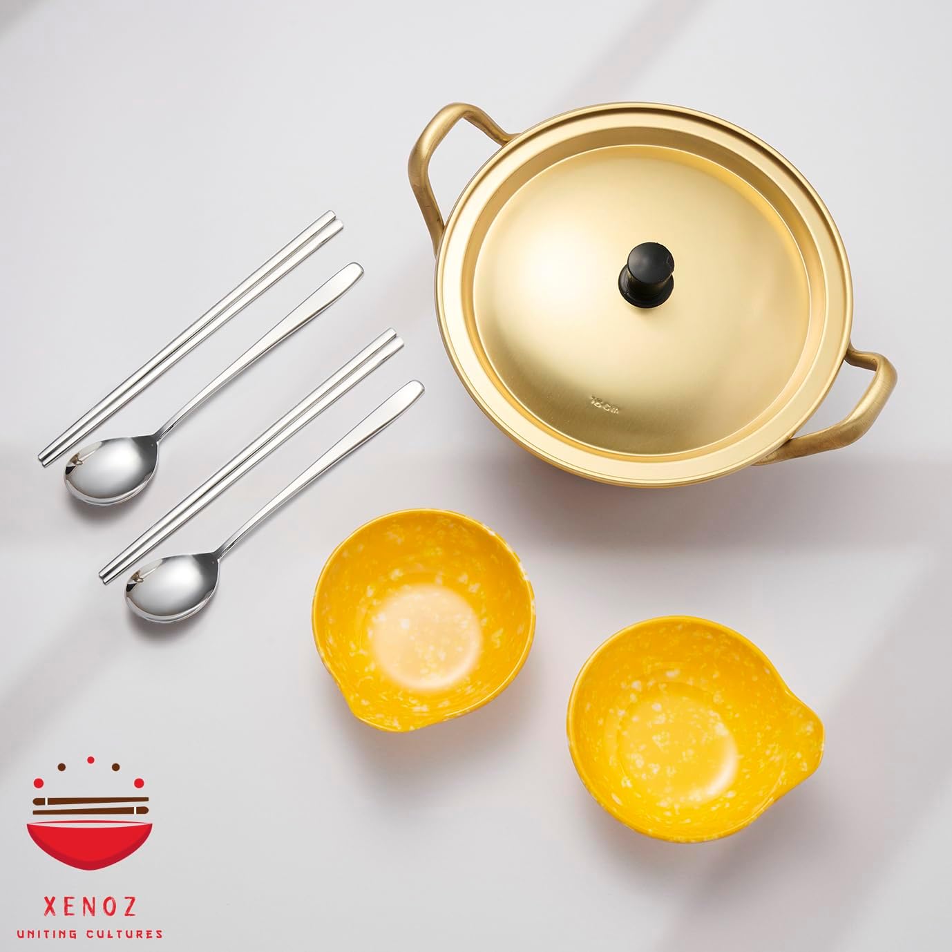 xenoz 2-Person Korean Ramen Kit u2013 Pot with 2 Bowls, Chopsticks & Spoons | Perfect for Instant Noodles, Quick Meals & Travel | Made in Korea (Double Pack)