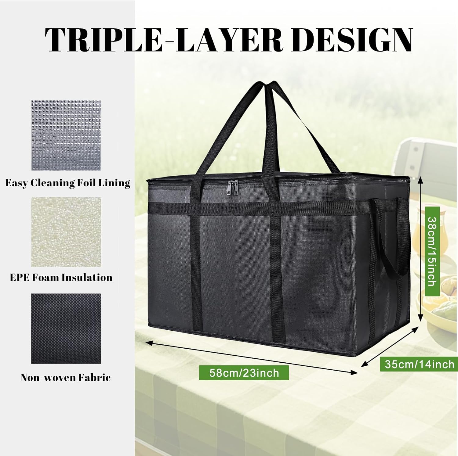 - Versatile XXXL thermal bag that reliably maintains temperature for both hot food delivery and cold grocery storage, making it the ultimate reusable carrier for professionals and families.